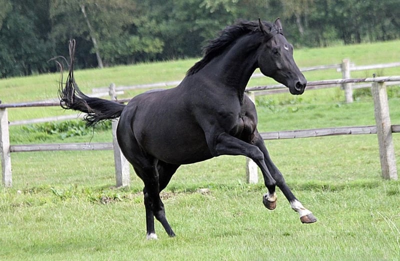 bildschöne Rappstute aus leistungsorientiertem Mutterstamm, tragend von Dynamite. Sie wurde gleich in der Zucht eingesetzt, da wir eine verbindliche Bestellung eines Fohlens hatten. Die Mutter ist Vollschwester zu bekanntem Siegerhengst und Geschwister Gewannen Jungpferdeprüfungen in Serie bis Grand Prix int.. Nur in wertschätzende Hände Ihrer hervorragenden Qualität entsprechend.