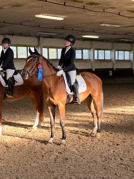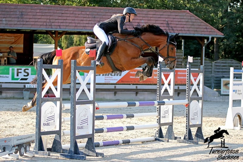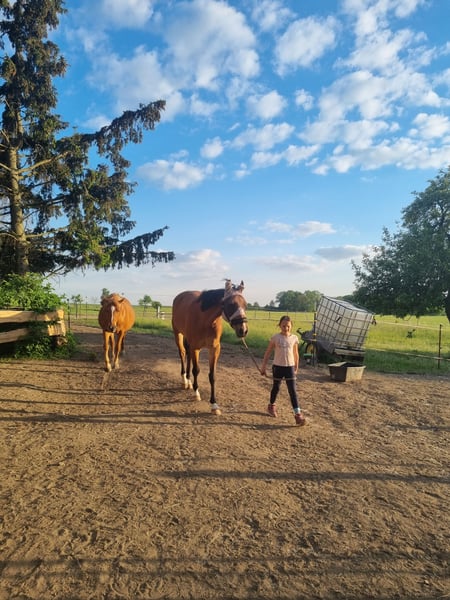 Zur Verkauf steht diese schicke sechsjährige Stute. 2025 Springpferde A gewonnen, Eignungsprüfung plaziert, A Dressur mit 7er Noten und E Springen mit Kind gelaufen. Feste Hindernisse und Wasser stellen kein Problem dar. Trotzdem stimmt die Chemie zwischen uns nicht, was dauerhaft nicht erfüllend ist. Daher suchen wir nach einem neuen passenden Zuhause für unsere Stute. Sie ist ehrlich im Parcours und verzeiht auch mal einen Reiterfehler. Die Stute hat eine gute dressurmäßige Ausbildung genossen, Außengalopp und Kurzkehrt sind einfach abrufbar. Sie steht fein an den Hilfen und ist von jedermann nachzureiten. Sie geht alleine und in der Gruppe ins Gelände. Auf dem Turnier ist sie gut händelbar und gelassen. Sie eignet sich ideal für den ambitionierten Reiter der sich weiterentwickeln möchte und einen Kumpel sucht. Mit dem richtigen Trainer und etwas Zeit ist sie sicher auch ein tolles Pferd für einen talentierten Jugendlichen. Sie ist definitiv ein Kandidat für die goldene Schärpe. Sie wird ausschließlich in nachweislich gute Hände verkauft. Die Stute ist sehr ranghoch und nicht für Offenstallhaltung geeignet. Röntgenbilder liegen vor. Ein Befund, welcher nicht beeinträchtigt, konnte dabei jedoch festgestellt werden. Dazu gerne persönlich mehr. Die Stute wird nicht zur Verfügung gestellt. Auch eine Ratenzahlung ist ausgeschlossen. Ein Probereiten ist nach Absprache gegen eine Aufwandsgebühr von 25 Euro möglich. (Diese wird selbstverständlich beim Kauf verrecht) Bei ernsthaften Interesse gerne telefonisch unter 0162 2353289 erreichbar.