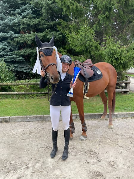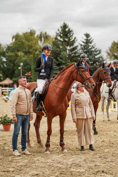 Mary Ruf Vendo una cavalla Oldenburg di 5 anni con pedigree da salto ostacoli. Sire: Nabab de Rêve, damsire: Aristo Z. Altezza: 172 cm. Montata da una donna. Radiografie pulite, disponibili su richiesta. Esperienza in gara fino a 125 cm. Nel 2025 ha partecipato ai Campionati di Giovani Cavalli, dove si è classificata seconda e ha ottenuto il vicecampionato della Slovacchia. Ha regolarmente partecipato a competizioni di salto ostacoli. È in buona salute, senza cattive abitudini e con un carattere eccellente. È reattiva, facile da gestire, coraggiosa, semplice da cavalcare, esegue automaticamente cambi di galoppo, amichevole con le persone e con gli altri cavalli, con un temperamento calmo e stabile e senza vizi. Facile da trasportare, anche da sola, e si comporta bene dal ferratore. Può anche aiutare un cavaliere meno esperto a superare gli ostacoli. Reagisce molto bene alla sella del cavaliere, è lavoratrice e si impegna sempre per compiacere il suo binomio. È sicura di sé e affidabile anche in passeggiata da sola. Mantiene un ritmo di lavoro 12/12. Andature ampie e armoniose. Questa cavalla è al 100% adatta allo sport di alto livello, con training a 140–150 cm.