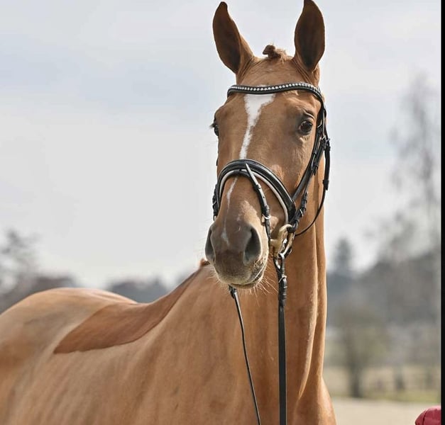 Sienna is an exceptionally beautiful and sweet mare who impresses with her charm, expression, and rideability. She is 6 years old, competes at dressage levels A/L, and has a solid, age-appropriate basic training. In everyday handling, she always presents as friendly, brave, and uncomplicated. Under saddle, she is willing to work and balanced. In the field, she is a reliable partner—calm, confident, and unshakable, whether alone or in a group. With her above-average gaits, she has all the qualities for the big arena and is also a horse that brings joy every day. An ideal training horse for the ambitious rider.