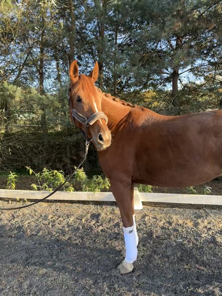 Sienna ist eine außergewöhnlich schöne und liebe Stute, die mit Charme, Ausdruck und Rittigkeit überzeugt. Sie ist 6 Jahre alt, befindet sich auf Dressur A/L-Niveau und hat eine solide, altersgerechte Grundausbildung. Im täglichen Umgang zeigt sie sich immer freundlich, mutig und unkompliziert. Unter dem Sattel ist sie arbeitswillig & ausgeglichen. Im Gelände ist sie ein echter Verlasspartner – brav, sicher und unerschrocken, egal ob allein oder in der Gruppe. Mit ihren überdurchschnittlichen Grundgangarten bringt sie alles mit für das große Viereck und ist gleichzeitig ein Pferd, das jeden Tag Freude macht. Ein optimales Ausbildungspferd für den ambitionierten Reiter.