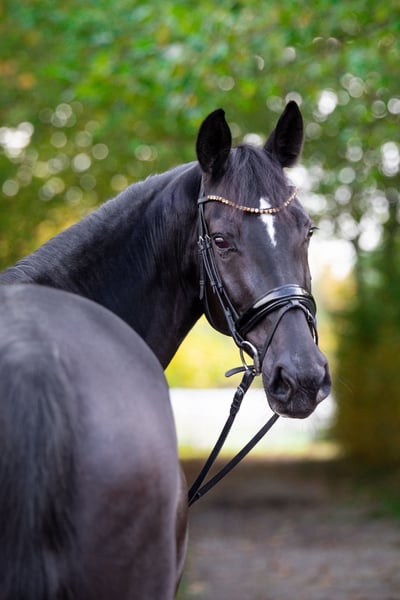 ~Lady Bellona of Wellberg~ Belantis x Everdale 6 years old Our princess is available for sale 🖤 This year, she already proved herself in dressage horse class M, where she secured a lovely 3rd place. “Bella” consistently shows dedication and ambition in her work. With three good gaits, a diligent hind leg, and always correct steps, this mare has all the potential. She is a mare that leaves nothing to be desired: rideable, beautiful, and eager. Bella enjoys versatile work, is well-behaved in the arena, has fun with pole and cavaletti exercises, and handles small jumps with ease. Raised with love and care directly from the breeder, she has grown and matured into a promising horse with great potential. 🚛 Loadable 👨🌾 Farrier-friendly 👨⚕️ Calm at the vet 🩻 Very good health certificate, including neck and back 📍 Unna ☎️ 015140084954