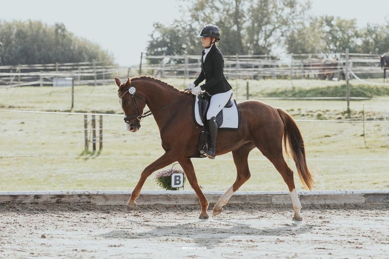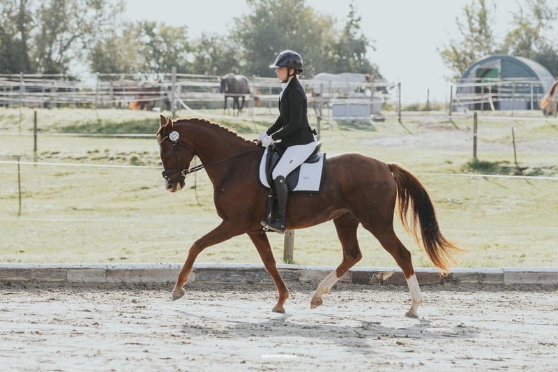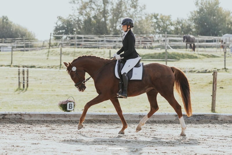Name: „Danciette“ | Alter: 7 Jahre | Stockmaß: 166 cm | Abstammung: Dancier x Rubinstern Noir | Farbe: Dunkelfuchs Danci überzeugt nicht nur durch ihr elegantes Exterieur, sondern auch durch ihr Talent und ihre Rittigkeit. Bereits A-Dressuren mit Noten um 8,0 gewonnen, sicher in L-Lektionen eingeführt, Außengalopp und fliegende Wechsel beherrscht sie spielerisch. Sie ist fein an den Hilfen, leicht in der Hand, sensibel und sehr lernbereit – ideal für ambitionierte Reiter mit feinem Sitz und Erfahrung in der Jungpferdeausbildung. Wer ihr Sicherheit und Vertrauen gibt, findet in Danci eine Partnerin mit Perspektive bis in die höhere Dressur. Im täglichen Umgang ist sie unkompliziert, menschenbezogen und anhänglich. Röntgen-TÜV (04/2022) ohne Befund, regelmäßig geimpft, entwurmt und Zähne gemacht. Wir wünschen uns für Danci ein liebevolles Zuhause mit artgerechter Haltung und Pferdegesellschaft. Platz vor Preis. Vorstellung und Probereiten nach Absprache (30 € Aufwandsentschädigung, bei Kauf verrechnet). 📞 0177 5440788