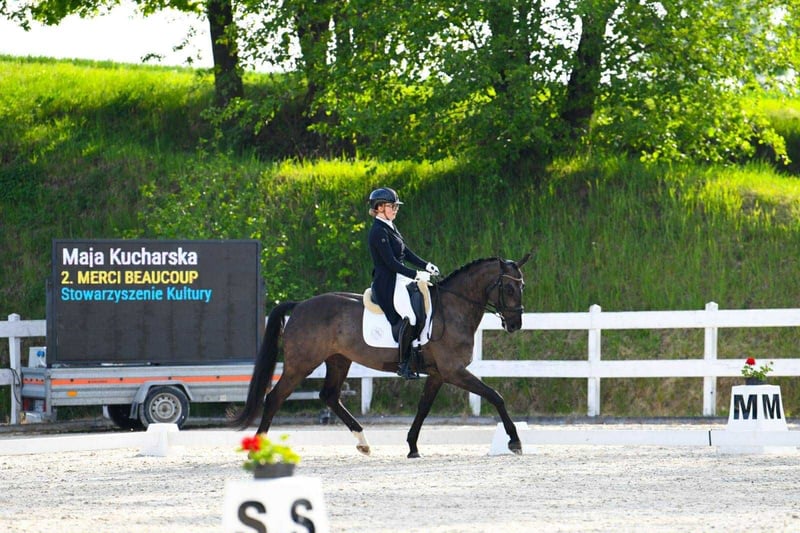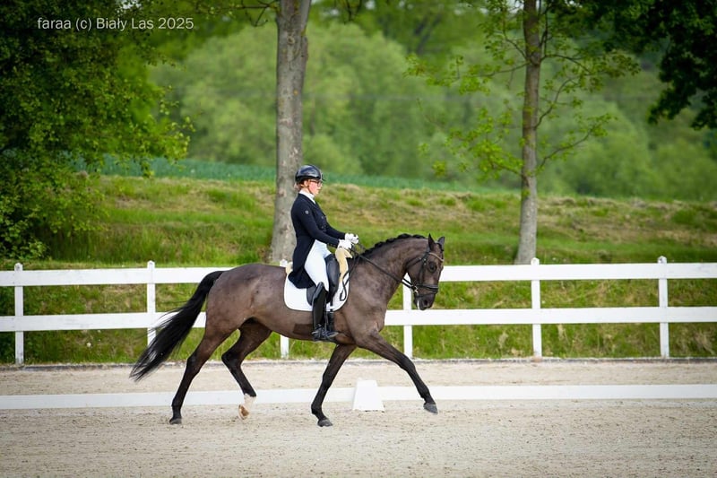 Merci Beucoup! Eine wunderbare Dressurstute von Millenium x Duino, **Zu verkaufen biete ich eine schöne Stute der Rasse Oldenburger** **Details:** - **Geburtsjahr:** 2018 - **Farbe:** Schwarz - **Stockmaß:** 167 cm Die Stute zeichnet sich durch ihr ausgezeichnetes Temperament und großes Potenzial für die weitere Entwicklung aus. Ideal sowohl für Amateure als auch für erfahrenere Reiter. Problemlos im Umgang, erfahren auf Turnieren, nicht scheu, guter TÜV. Video verfügbar über WhatsApp: +48 881615495
