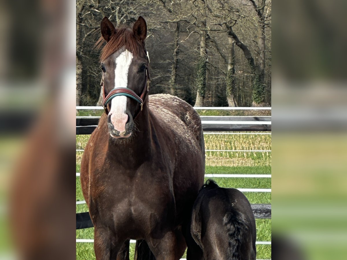 Wer sich eine bildschöne Dunkelfuchsstute wünscht, die 2 Fohlen hatte, 4 x hoch weiss mit Bauchfleck und Blesse, dürfte mit ihr einen Volltreffer landen. Beide Fohlen gingen gutbezahlt in fördernde Hände. . . . . . .