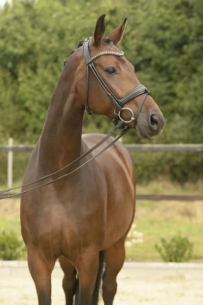 Chick i Charme nosi imię „Lalique”! Ta rzucająca się w oczy klacz, z hodowli, wyróżnia się szczególnie doskonałym krokiem i kochającym charakterem w obcowaniu. Jej bezproblemowe prowadzenie i zapał do pracy czynią ją wyjątkowym koniem do szkolenia, który dopiero zaczyna swoją karierę.