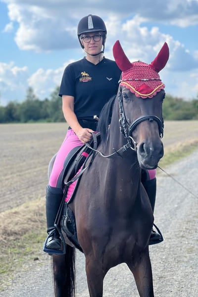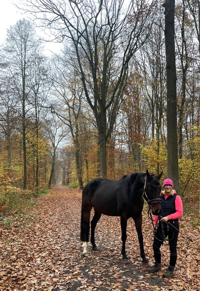 Ich suche für meine 7 jährige Oldenburger Stute Stockmaß ca. 168cm ein neues tolles Zuhause bei Pferdemenschen die ähnlich wie ich immer pro Pferd denken und den Leistungsgedanken hinten anstellen. Ich habe die Maus direkt vom Züchter, sie hat wahnsinnig schöne Bewegungen und einen unheimlich lieben Ausdruck. Sie hat bei den Züchtern als Jungpferd eine gute Beritt Ausbildung genossen. Gelände kannte sie damals nicht, die Züchter erzählten aber stolz, dass sie regelmäßig aufs Laufband geht. Ist ja fast das Gleiche ;-) ... ich habe angefangen ihr die Welt da draußen zu zeigen -> mittlerweile kennt sie Bahngleise mit Zügen, LKW's, Baustellen mit ratternden Baumaschinen, Kühe, Schafe, Dammwild. Sie hat gelernt sich am Kappzaum selber zu tragen ohne das man sie mit Ausbindern runter prügelt. Ich habe mir auch zum Thema geeigneter Hufschutz viele Gedanken gemacht, da sie bei den Züchtern immer vorne mit Eisen beschlagen war, die sie aber ständig verloren hatte. Mittlerweile läuft sie mit geklebten Duplos um einiges natürlicher. Ich wünsche mir von Herzen, dass sie nun einen Menschen oder eine Familie mit Pferdeverstand findet wo sie pferdegerecht und glücklich leben darf. Ansonsten ist sie komplett durchgeimpft Influenza/Tetanus/Herpes. Sie wird regelmäßig entwurmt, die Hufe werden alle 6 Wochen bearbeitet und beklebt, was sie entspannt mit macht. Sie lässt sich auch anstandslos verladen. Ich gebe sehr gerne über alles Auskunft oder beantworte gerne alle Fragen. Videos kann ich auf Wunsch auch versenden.