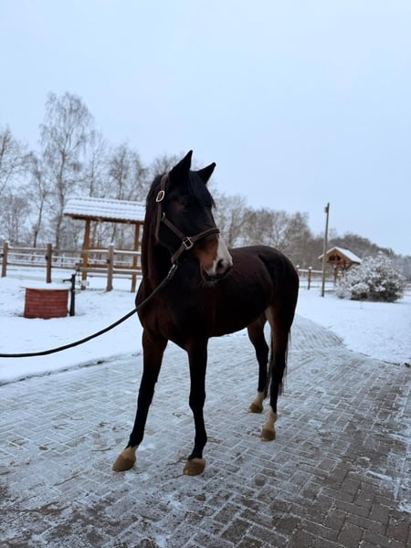 For sale is a 7-year-old Oldenburg mare, unridden, with an interesting show jumping pedigree. Her dam was successful at S-level in show jumping, which means the mare carries valuable Holsteiner performance bloodlines on her maternal side. The mare exhibits minor deviations in her conformation, which are due to intrauterine positioning. This is communicated openly and honestly. She has already produced two very correct and healthy foals. Therefore, she is especially suitable for breeding. The mare will only be entrusted to loving and experienced hands; this is not a desperate sale. If you are interested or require further information, please feel free to contact me. A personal meeting is always possible.