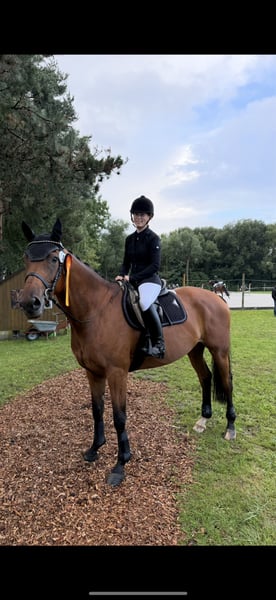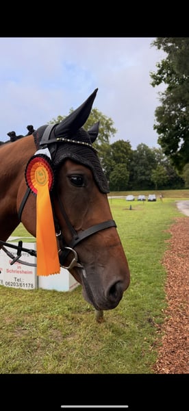 For sale is a charming mare, born in 2019, with a height of 1.68 m – a true all-round talent with an excellent pedigree and a heart in the right place. 🔹 Parentage: Sire: Secret (Sezuan x St. Moritz) – Vice-World Champion of young dressage horses, Bundeschampion, and one of the most sought-after sires of his generation. He is known for outstanding rideability, movement quality, and a clear mind. With over 50 licensed sons and numerous high-priced auction foals, Secret is considered an exceptional talent in modern dressage horse breeding. Dam's sire: Guzzi – brings athletic toughness, willingness to perform, and versatile potential. 🔹 Usage & Character: Our mare is not only an eye-catcher visually but also impresses with her honest and uncomplicated character: - Already placed in show jumping competitions 🏅 - Ridden confidently and calmly by younger riders - Reliable in the field, making her a true family horse - Well-behaved in daily handling, good with the farrier and loading She combines athletic potential with a great disposition, making her interesting for both the ambitious amateur and the whole family. 👉 Facts at a glance: Born: 2019 Height: 1.68 m Color: Bay Parentage: Secret x Guzzi Usage: Dressage, Show Jumping, Cross-Country, Leisure & Breeding ✨ A mare that simply brings joy – in the arena, in the course, in the field, or as a loyal partner in everyday life! You can also find some additional insights on my Instagram account: alexxbaumann The mare has been with me since she was 7 months old, raised at my home, I have backed her and trained her, so she has grown up with a lot of love in a family environment ❤️