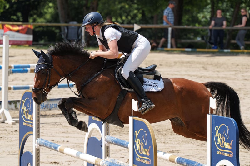 Talented Oldenburg Show Jumping Mare – Born 2019 This elegant Oldenburg mare is a promising show jumper, impressing with her natural agility and impressive jumping technique. Standing at 16.1 hh, she offers the ideal size for ambitious riders seeking a reliable partner. The bay mare is well-ridden and demonstrates a solid basic education. She has a strong aptitude for jumping, good technique, and pleasant rideability. Her friendly nature and willingness make her a true gem. This Oldenburg show jumper is well-suited for show jumping and eventing, whether for the ambitious amateur or young rider. Additionally, she has achieved a high dressage score of 7.5 in the A-level. We look forward to hearing from you to discuss further details and to arrange a viewing.