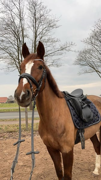Wir verkaufen unsere Stute, die wir dreijährig direkt vom Züchter roh gekauft haben. Die Stute kannte damals noch nichts und wurde anschließend schonend eingeritten und weiter ausgebildet. Sie ist turniererfahren und zeigt sich dort genauso brav wie zu Hause. Man kann mit ihr problemlos alleine ausreiten. Sie ist doppelt veranlagt für Dressur und Springen. In der Dressur lässt sie sich fein und angenehm reiten. Im Umgang ist sie unkompliziert und menschenbezogen. Leider hatte sie eine Sehnenverletzung, die noch nicht vollständig ausgeheilt ist. Deshalb verkaufen wir sie deutlich unter Wert. Die Halbgeschwister unserer Stute sind züchterisch hoch erfolgreich und wurden bis zum Brillantring sowie als Staatsprämienstuten prämiert. Wir wünschen uns für sie einen Platz mit Geduld und Sachverstand, an dem man ihr die nötige Zeit gibt.
