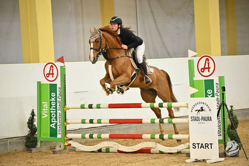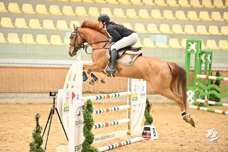 Fancy Fireball Exceptionally talented show jumping mare with potential for the advanced level This stunning 2018-born chestnut mare, Fancy Fireball by Conthargos out of Chacco Blue, is an outstanding horse with tremendous potential. Fancy Fireball impresses with extraordinary jumping ability, excellent technique, and an exceptionally honest attitude. She strives to avoid mistakes, approaches each jump with confidence, and shows neither refusals nor hesitation. She has a refined, modern type with plenty of go, always cooperative and eager to perform. She is not spooky or tense and shows no fear of height. Due to her quality and attitude, we are confident she will develop into a horse suitable for the advanced classes. Additionally, she is very agile and careful. In dressage, she also demonstrates excellent basic gaits, although she is still in further training there. In handling, Fancy Fireball is a real sweetheart. Her character is very gentle and people-oriented. X-rays without findings are available. Loading and traveling to unfamiliar venues pose no problem. She has had two foals and therefore entered sport somewhat later. Her first competition was last year, where she jumped clear up to 1.15 m and placed. She started the season strongly this year and also completed a clear round. A horse for riders who value quality, honesty, and genuine performance potential. For serious inquiries, please contact exclusively by phone or WhatsApp: +43 680 50 11 366 Trial ride: €30
