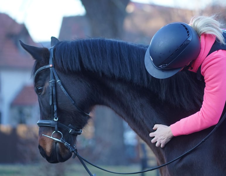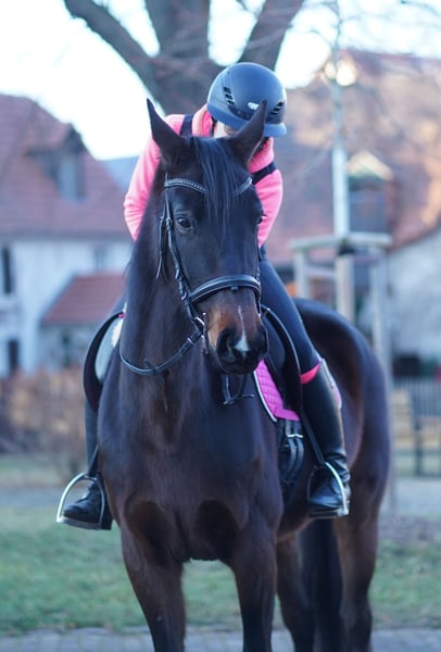 Steckbrief 🐴 Oldenburger Stute, 7 Jahre Farbe: Dunkelbraun Stockmaß ca. 165cm Papiere mit Abstammung Royal Hit / Rubinstein I / Sandro Hit Schmiede-/verladefromm geimpft Tetanus/Influenza/Herpes Hufbearbeitung alle 6 Wochen (Vorne mit Duplos beklebt) Die Maus wird bei mir als Freizeitpferd geritten. Sie kennt Bodenarbeit und die Arbeit am Kappzaum. Im Gelände ist sie in Begleitung entspannt, alleine ist sie noch unsicher, aber nicht völlig kopflos. Sie hat eher weniger Go und hat bei mir noch nie die Flucht nach vorne gesucht. Wenn sie unsicher wird, bleibt sie eher stehen. Sie ist im Umgang eine sehr liebenswerte und freundliche Stute. Bei mir lebt sie in einer kleinen gemischten Gruppe im Offenstall mit 24/7 Heu und im Sommer stundenweise Wiese. Ich wünsche mir für sie ein 🩷-Zuhause mit einer artgerechten Haltungsform, wo sie weiter Freizeitpferd bleiben darf. Ich sehe sie nicht als Sportpferd, weder mental noch körperlich, auch ist sie aufgrund ihres Alters kein Anfängerpferd. Bei Fragen könnt ihr mir gerne eine Nachricht schreiben. Ich versende auch gerne diverse Videos für den ersten Eindruck aus der Ferne. Bitte gebt mir nur vorab einen kurze Vorstellung.