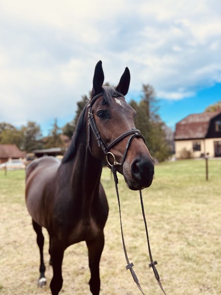 **Advertisement for sale: Beautiful Oldenburg mare for sale** We are offering an outstanding Oldenburg mare for sale: - **Breed:** Oldenburg - **Sex:** Mare - Year of birth:** 2018 - **Color:** Black bay - Height:** 169 cm - **Discipline:** Jumping This elegant and talented mare captivates with her impressive appearance and outstanding jumping ability. She is well trained and ready for new challenges in show jumping. Our Cornetina has currently competed & placed up to novice level show jumping. She was broken in very late. She jumps changes and is very nice & easy in daily dressage work. She is careful at the jump and unimpressed by water mats or planks. However, as she is very fine in the mouth & sensitive on the leg, she is not suitable for *absolute beginners*. If you are interested or for further information please contact us!