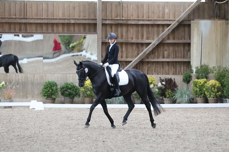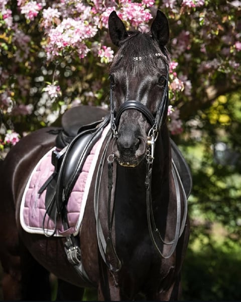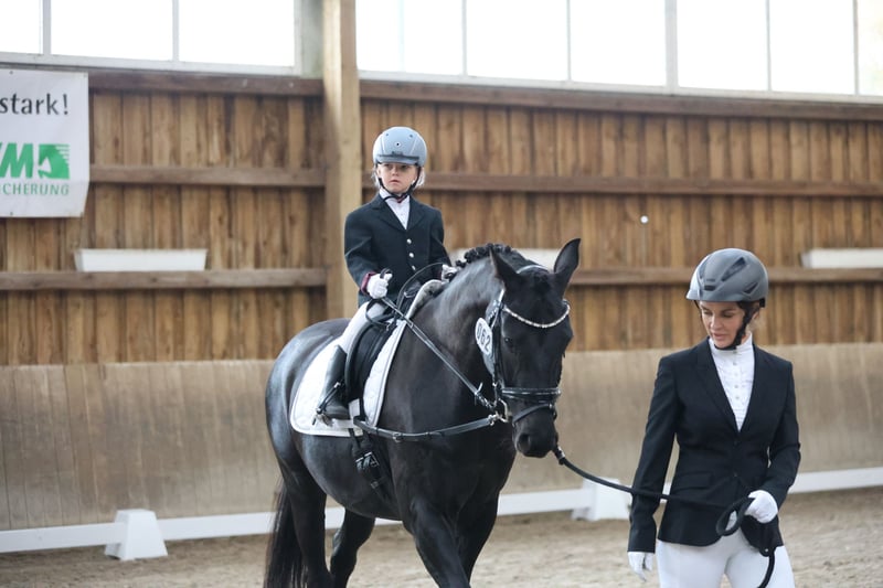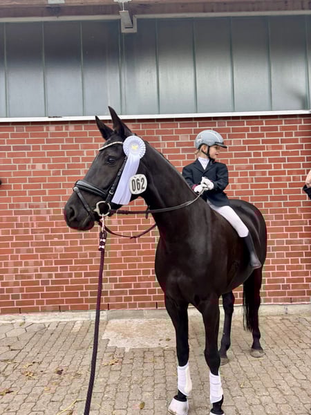 Zum Verkauf steht diese tolle 8-jährige Oldenburger Rappstute mit einem Stockmaß von 1,61. Abstammung: D‘Égalité x Feu d‘Or 2. Sie ist Dressurpferde A und L* Dressur platziert. Im Umgang ist sie absolut unkompliziert. Kennt Boxenhaltung sowie Aktivstall mit gemischter Herde und ist im Herdenverband sehr umgänglich. Seit ihrem 4. Lebensjahr befindet sie sich in professionellem Beritt. Aktuell werden im Training bereits einige M Lektionen erarbeitet. Sie springt mit ihrer Bereiterin auch schon sehr zuverlässig Wechsel. Sie ist sehr leicht in der Anlehnung und hat keinerlei Unarten wie Bocken, Durchgehen oder Steigen. Daher auch perfekt für ein Tochter Mutter Gespann. Sie konnte bereits Turniererfahrung sammeln, zeigt sich hier aber manchmal noch etwas beeindruckt von der fremden Gesamtkulisse. Sie ist dabei immer brav, nur etwas eingeschüchtert. Daher müsste sie hier mit einem erfahrenen Reiter noch mehr Routine bekommen. Ihre letzten Turnierstarts in diesem Jahr lief sie mit einem 17 jährigen Mädchen. Darüber hinaus geht sie gerne ins Gelände (mit Hund), ob alleine oder in der Gruppe. Springt Zuhause auch einen E Parcours. Rundum ein tolles Pferd, welches keine Wünsche offen lässt. Regelmäßig entwurmt, geimpft, Zahn behandelt. Gute Hufsubstanz. Ich suche für dieses Traumpferd ein Traumzuhause und verkaufe sie nur wenn alles 100%ig passt. Um dem Reittourismus vorzubeugen, wird für das Probereiten/ Vorreiten durch die Bereiterin 30€ berechnet.
