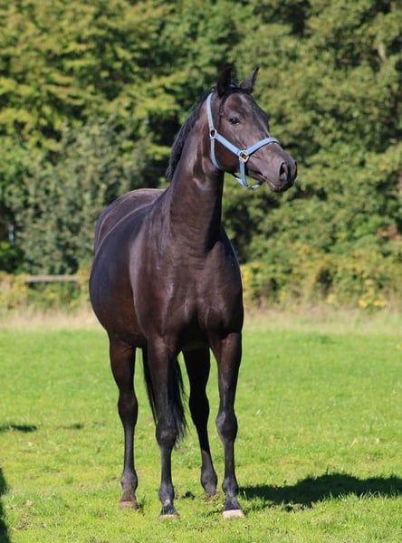 Bieden voor de fokkerij! Type blikvanger en stal favoriet !!! Prachtige Oldenburgse merrie 2017 van For Romance/Sandro Hit/Rubinstein met geweldige dynamische bewegingen en super chique bovenlijn. Een merrie die helemaal in het model staat van haar vader "For Romance": Ze imponeert ook met 1a karakter en geweldige bewegingen maar ook met een zeer goede merrielijn. . De merrie heeft ook een super lief karakter en betovert iedereen meteen. Je moet gewoon van haar houden. Compleet ongecompliceerd met hoefsmid, leiden, verzorging... Absoluut ideaal voor de amateur fokker die op zoek is naar een slimme zwarte merrie met veel kwaliteit en een vriend voor elke dag. Nog niet bereden omdat ze al een geweldig zwart hengstveulen van Jameson heeft gehad en een zeer goede moeder is. Merrie heeft een geweldige erfelijkheid. Video is genomen direct na het spenen van het veulen en is daarom helaas niet helemaal optimaal, maar ik denk dat het genoeg is om haar kwaliteit te zien. Haar afstamming heeft ook alle dressuurkwaliteiten die je nodig hebt om een geweldig paard te worden in de dressuurpiste of voor de fokkerij. Haar vader For Romance, een tweevoudig kampioenshengst, won als zevenjarige zijn eerste dressuurwedstrijden voor gevorderden en stond in de finale van de Nürnberg Burg Cup en is nu succesvol tot en met Grand Prix-niveau. Grootvader Sandro Hit, Bundeschampion en Wereldkampioen dressuurpaarden, is nog steeds een van de topverervers van moderne dressuurpaarden met sterke bewegingen. De dressuurkwaliteit en rijdbaarheid van de hengst Rubinstein is ook in de latere generaties goed geborgd. De merrie komt ook uit een zeer goede merrielijn, die een van de belangrijkste is in Hannover: KOENIGSTREUE merrielijn (Hannoveraanse merrielijn 1188405) De merrie is zus van 2 gevorderde dressuurpaarden en een zeer succesvolle fokmerrie in Engeland. Talrijke Hannoveraanse veilingpaarden uit haar moederlijn. Moeder was een veiling elite veulen en heeft een zeer goede SLP in Hannover en was zeer succesvol in jonge paarden testen voor de fokkerij. Alle veulens uit haar moeder zijn ook in de prijzen gevallen en 3 werden toegelaten tot de Eliteveiling. De merrie is nooit ziek of kreupel geweest en kon dus ingereden worden. www.quadriga-pferdehaltung.de