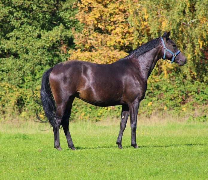 Oferta na hodowlę! Typ przykuwający uwagę i ulubienica stajni! Piękna klacz Oldenburska z 2017 roku, po For Romance / Sandro Hit / Rubinstein, z dużymi, dynamicznymi ruchami i świetną, elegancką linią grzbietu. Klacz, która w pełni odzwierciedla model ojca „For Romance”: zachwyca również doskonałym charakterem i wspaniałymi ruchami, a także bardzo dobrym rodowodem matczynym... Klacz ma również cudownie przyjazny charakter i niemal natychmiast przyciąga każdego do siebie. Po prostu trzeba ją pokochać. Jest całkowicie bezproblemowa przy podkuwaniu, prowadzeniu, czyszczeniu... Idealna dla amatorskiego hodowcy, który szuka eleganckiej, czarnej klaczy z dużą jakością i towarzyszki na co dzień. Nie była jeszcze jeżdżona, ponieważ miała już pięknego, czarnego ogierka od Jamesona i jest bardzo dobrą matką. Klacz przekazuje dużą jakość potomstwa. Film został nagrany bezpośrednio po odsadzeniu źrebięcia, dlatego nie jest idealny, ale moim zdaniem wystarczy, aby zobaczyć jej potencjał. Jej rodowód obejmuje wszystkie najważniejsze dyscypliny ujeżdżeniowe, potrzebne do wykształcenia wielkiej gwiazdy na arenie lub do hodowli. Ojciec, For Romance, dwukrotny zwycięzca konkursów, w wieku siedmiu lat wygrał pierwsze poważne konkursy ujeżdżeniowe i zakwalifikował się do finału Nürnberger Burg-Pokal, a obecnie odnosi sukcesy na poziomie Grand Prix. Wnuk, Sandro Hit, jako Mistrz Federalny i Mistrz Świata Młodych Koni, do dziś jest jednym z czołowych reproduktorów dla ruchliwych, nowoczesnych koni ujeżdżeniowych. Również poprzez stempelowego ojca Rubinstein, w dalszej linii pokoleniowej, jakość ujeżdżeniowa i rzutność są doskonale zabezpieczone. Klacz pochodzi z bardzo dobrego rodu matczynego, będącego jednym z najważniejszych w Hanowerze: Ród matczyny KOENIGSTREUE (Hanower, rodowód 1188405). Klacz jest siostrą dwóch koni startujących w S-dressage i odnoszącej sukcesy klaczy hodowlanej w Anglii. Z matki pochodzą liczne konie aukcyjne Hanoweru. Matka była wybitnym źrebięciem aukcyjnym, uzyskała bardzo dobre wyniki w testach wydajności w Hanowerze i przed rozpoczęciem hodowli odnosiła sukcesy w młodzieżowych konkursach. Z matki wywodzą się również wszystkie odchowane źrebięta, z trzech z nich wybrano na aukcję elitarne konie. Klacz nigdy nie chorowała ani nie była kulawa, więc z pewnością można ją także wprowadzić pod siodło. www.quadriga-pferdehaltung.de