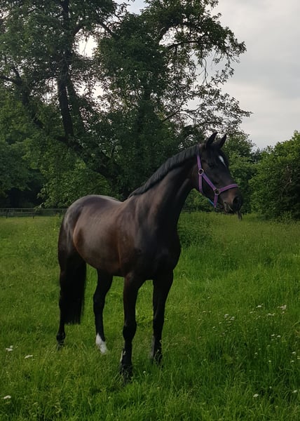 Bildschöne Verbandsprämienstute aufgrund von Krankheit und einhergehender Aufgabe des Reitsports in allerbeste Hände abzugeben. Zuchtverband: Oldenburger Springpferd Top Abstammung mit Calido, Contendro, Feinblick, Just Spectacular xx, Mytens xx im Pedigree. Frühere Turnierfolge in Dre.+Spr. bis Kl. L und VA. Super rittig, top GGA mit viel Schwung+Leichtfüßigkeit (in dem Dressurvideo hat sie keine Eisen drunter) und sehr kraftvolle, agile, vorsichtige Springtechnik. Sie hat viel Go, aber dabei einen sehr ehrlichen, lieben Charakter. Sie würde sich über Ausritte, Bodenarbeit und sonstige Beschäftigung sehr freuen. Da eine dauerhafte sportliche Belastung aufgrund einer Verletzung nicht zugesichert werden kann, wird sie weit unter Wert als Zuchtstute/Freizeitpferd angeboten. Für die Zucht ist der Befund unerheblich. Mehr Infos gerne telefonisch.