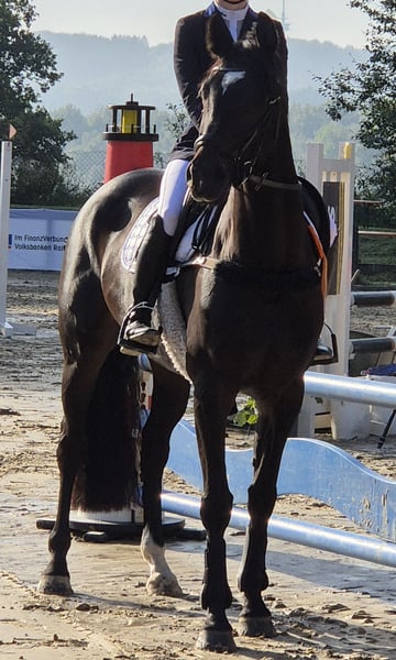 Prachtvolle Verbandspremienstute, die aufgrund einer Erkrankung und der damit verbundenen Aufgabe des Turniersports in allerbeste Hände abgegeben wird. Zuchtverband: Oldenburger Springpferd Ausgezeichnete Abstammung mit Calido, Contendro, Feinblick, Just Spectacular xx, Mytens xx im Pedigree. Frühere Turniererfolge in Dressur und Springen bis Kl. L sowie im Voltigieren. Sehr gut reitbar, hervorragende GGA mit viel Schwung und Leichtfüßigkeit (im Dressurvideo sind keine Eisen auf den Hufen) sowie eine sehr kraftvolle, agile und vorsichtige Springtechnik. Sie hat viel Go, dabei aber einen äußerst ehrlichen und lieben Charakter. Sie würde sich über Ausritte, Bodenarbeit und andere Beschäftigungen sehr freuen. Da eine dauerhafte sportliche Belastung aufgrund einer Verletzung (+ Chip) nicht garantiert werden kann, wird sie weit unter Wert als Zuchtstute oder Freizeitpferd angeboten. Für die Zucht ist der Befund unerheblich. Weitere Informationen gerne telefonisch.
