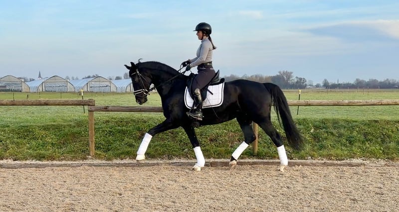 Jument de dressage noire comme du jais, possibilité d’échange.