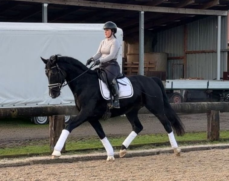 Verkauf oder ggf. Tausch/Inzahlungsnahe Ich biete hier meine 2017 geborgene Oldenburger Rappstute von Frascino x Florencio I an. Sie wurde dreijährig direkt vom Züchter gekauft und schonend ausgebildet. Sie kann zahlreiche Siege und Platzierungen bis L*-Dressur vorweisen. Sie ist sehr leistungsbereit, lernwillig und mit angenehmen Go ausgestattet- ein echtes Powerhouse, das gefordert werden möchte. Aufgrund ihrer Motivation und Sensibilität ist sie für Anfänger eher nicht geeignet, kommt dafür aber einem ambitionierten Reiter, der ihre Energie und ihr Potenzial zu schätzen weiß, sehr entgegen. In ihr findet man einen stets motivierten Sportpartner. Sie möchte ausgelastet und gearbeitet werden, dem werde ich zeitlich leider nicht mehr gerecht. Ich wünsche mir für Sie einen ambitionierten Reiter, der die Zeit hat, ihr viel abwechslungsreiches Training zu bieten. (Sie kennt auch Gelände, Doppellonge, Bodenarbeit und kleine Sprünge) Hat man sie auf seiner Seite, gibt sie im Viereck stets 100 Prozent und verfügt hier über viel Potential zur weiteren Förderung. Aufgrund ihrer guten Abstammung wäre sie sicherlich auch für die Zucht interessant. Gute Röntgenbilder von Rücken inkl. Hals liegen vor. Was ich mir im Falle eines Tausches vorstellen könnte: Ein gesundes, kopfklares, entspanntes Pferd (WB/ Stute oder Wallach) gerne im kleineren Maß (bis ca. 1,66 cm) zwischen 5-8 jährig. Ansprechende GGA für dressurmäßige Arbeit, Gelände und ab und an ein Turnier. Ein Pferd, das nicht jeden Tag ausgepowert werden muss, und neben dem alltäglichen Koppelgang auch Mal mit etwas weniger Arbeit zufrieden ist. Bei Interesse oder weiteren Fragen, gerne melden.