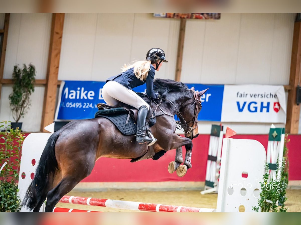 Beautiful 8-year-old mare with an outstanding international pedigree available for sale. Poci is a show jumping horse at L-level, placed in competitions, stands at 1.68 meters, and is absolutely well-behaved. She is suitable for children and inexperienced riders in the arena and on trail rides, making her a true fun ride for everyone—whether in the woods, water, or on open fields. Her greatest talent lies in jumping, where she demonstrates a powerful take-off, jumps very roundly, and moves with incredible elasticity through her body. She is unaffected by any under-saddle aids and maintains her focus. Due to her strong impulsion, a secure seat is essential at the jump. She has the talent for everything, only requiring a rider who can sit well and appreciate her qualities. Her dam has produced multiple S-level winners and comes from a direct 1.60m dam line. The full sister of her dam is successful at 1.60m under Niels Bruynseels. In handling and herd behavior, she is well-mannered, suitable for amateurs, loads easily onto trailers, and is very comfortable to ride. She has spent 24 hours outside with the herd at our place, eats well, and is very easy to keep—lightly fed, with top TÜV (including neck and back). She comes directly from the breeder. For us, as a leisure and amateur horse, she is almost "too good," and since we cannot keep them all, this rare gem is for sale. Her mother and siblings are with us and can be visited. Currently in professional training, trial rides are possible by arrangement. Directly from the breeder.