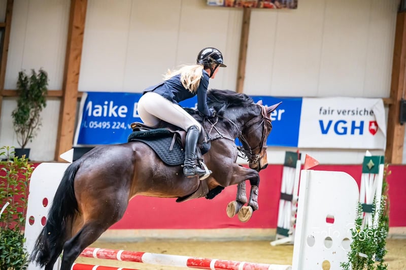 8-letnia piękna klaczka o międzynarodowej, znakomitej linii rodowodowej, do sprzedaży. Poci jest skoczkiem w kategorii L, plasuje się na poziomie 1,68 m i jest absolutnie spokojna. Jest zarówno odpowiednia dla dzieci, jak i dla słabszych jeźdźców podczas jazdy w terenie i na ujeżdżalni — to prawdziwa maszyna do zabawy dla każdego, niezależnie od tego, czy w lesie, wodzie, czy na polu. Na skokach pokazuje swoje największe talenty — ma mocny odbicie, skacze bardzo okrągło i z ogromnym wyczuciem ciała, nie dając się wyprowadzić z równowagi pod wpływem podkładów. Ze względu na jej mocne odbicie, na skokach konieczny jest pewny, wyczuwalny siedzeń. Ma potencjał na wszystko, potrzebuje tylko jeźdźca, który potrafi docenić i utrzymać równowagę. Jej matka ma wielokrotnie zwycięskie potomstwo na poziomie S, pochodzi z bezpośredniej linii matki o rozstawie 1,60 m, a jej peł sistera od matki odnosi sukcesy pod Niels Bruynseels na poziomie 1,60 m. W codziennym użytkowaniu i w stadzie jest spokojna, nadaje się dla amatorów, dobrze radzi sobie z jazdą samodzielną z przyczepą, bardzo wygodna w siodle, przez 24 godziny przebywała na pastwisku na zewnątrz, je, wszystko toleruje, jest lekka w utrzymaniu, posiada aktualne badania techniczne (w tym szyję i kręgosłup), pochodzi bezpośrednio od hodowcy. Dla nas jako konia rekreacyjnego i dla amatorów jest niemal "za dobra", a nie można zatrzymać wszystkich, dlatego ta rzadkość jest na sprzedaż. Matka i rodzeństwo są u nas i można je obejrzeć. Obecnie jest w profesjonalnym treningu, jazdy próbne możliwe po uprzednim umówieniu. Bezpośrednio od hodowcy.