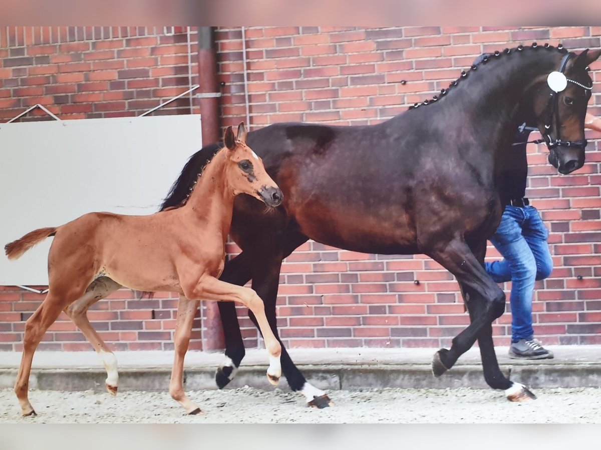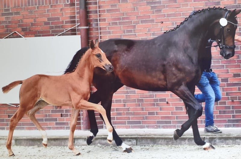 Na sprzedaż wystawiona jest klacz o wysokości około 1,68 m, urodzona w 2017 roku, o doskonałej jakości hodowlanej. Miała już kilka bardzo dobrych źrebiąt, w tym także źrebięta aukcyjne, które wszystkie zostały sprzedane za bardzo dobre ceny. Klacz jest oferowana wyłącznie ze względu na zmniejszenie stada. Dzięki sprawdzonej linii rodowodowej świetnie nadaje się na matkę hodowlaną. Może być jednak również bez problemu ponownie wprowadzona do pracy i jazdy. W obchodzie jest absolutnie spokojna, łatwa w obsłudze, bardzo towarzyska zarówno wobec ludzi, jak i w stadzie. Jest pełną siostrą Franzel10, odnoszącej sukcesy w klasie Intermediaire Grand Prix S. Idealna klacz zarówno do hodowli, jak i na rekreację. W razie pytań lub dodatkowych informacji proszę o kontakt. Rodowód: Franziskus x De Niro x Ramino