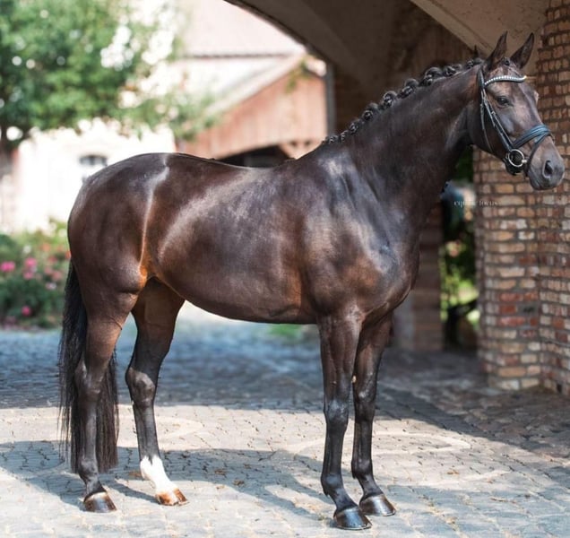Here we present an exceptionally talented Oldenburg mare (2017) with excellent conformation and pedigree – Revolution x Harvard. This horse has been professionally trained and is currently in ongoing training at M-level under a rider with a gold riding badge. 🏆 Sport Highlights - Winner of Dressage Horse Test A - Placed up to L** level - Confidently progressing in training at M-level, with clear potential for S-level - Outstanding basic gaits with remarkable elasticity and rhythmical precision - Very positive work attitude, always eager to perform, and clear-minded 💫 Character & Temperament - People-oriented and affectionate - With the right partner, she forms a true partnership and fully develops her potential with absolute willingness to work and dedication - Socially compatible (herd-friendly), ambitious, and despite her pronounced gaits, very rideable and sensitive to aids In addition to her sporting qualities, she possesses all the traits for future breeding purposes. From our perspective, she is ideally suited for crossing with a stallion from the V-line – such as Vitalis or Vivaldi – to further enhance her movement quality and rideability. We are seeking a rider for this wonderful mare who will gently nurture her talent and enthusiasm for the sport. If desired, her further training up to Grand Prix level can be supported or fully managed. Lessons near Berlin or additional show appearances are also possible. Due to pregnancy and other family plans, I must part with this fantastic mare and several other horses. Therefore, we are also offering other outstanding dressage horses with great potential. Serious inquiries are welcome, and we are happy to arrange a personal visit and trial ride. A horse for those seeking something special – and ready to help her reach her full potential. Current health certificate with images (January 2025) available.
