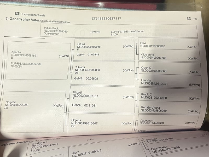 Zum Verkauf steht diese bewegungsstarke Zuchtstute von Indian Rock x Boston x Rubinstein. Im Umgang kopfklar und super menschenbezogen, was sie auch an ihre Nachkommen weitergibt. Ihre erste Tochter ist bereits hocherfolgreich in ihren ersten Reitpferdeprüfungen gewesen, ist dabei super leichtrittig und will gefallen (Videos vorhanden). Aktuell tragend von St. Noblé ( St. Schufro x Sir Donnerhall). Termin 23.03.2026 Verkauf aufgrund von Nachzucht Video der Stute kann auf Anfrage versendet werden TEL.: 0152 21979119