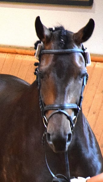 A causa di motivi di allevamento e di un soggiorno all'estero, questa splendida, brave e premiata Verbandstute viene ceduta. Nata nel 2017, di colore baio scuro, circa 176 cm di altezza al garrese, figlia di FAHRENHEIT x STEDINGER. È cresciuta in paddock con molta libertà di movimento ed è stata montata da una cavallerista di livello S in età avanzata. A Oldenburg, è stata riconosciuta come cavalla da riproduzione con attestato VPr. e ha completato con successo la valutazione di selezione (SLP). Da allora è stata montata solo sporadicamente. Ha avuto due puledri (2023 e 2025) da BENICIO, entrambi premiati come puledri di alta qualità, entrambi di colore morello scuro. Non è stata fecondata per il 2026. Linea materna: Due cavalle di élite di fila, seguite da una cavalla di StPrST. Il fratello completo della madre è un stallone premiato di Oldenburg. Linea di sangue: Oldenburger Stamm 74.