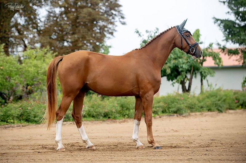 Verkaufe selbstbezogenen, eleganten Oldenburger Wallach – ideal für den Dressur- und Springsport. Dieser charmante Fuchs-Wallach wurde im Jahr 2022 geboren und beeindruckt durch sein freundliches Wesen sowie sein elegantes Erscheinungsbild. Mit einem Stockmaß von 169 cm bietet er die perfekte Größe für ambitionierte Reiterinnen und Reiter, die ihre Karriere vorantreiben möchten. Sein altersspezifischer Charakter, gepaart mit viel Potenzial in der Dressur, macht ihn zu einem vielversprechenden Partner für den Turniersport oder den gehobenen Freizeitreitsport. Der Oldenburger ist bekannt für seine gute Grundausbildung und seine angenehme Art im Umgang. Skylight ist professionell angeritten und bereits in Reitpferdeprüfungen und Dressurpferdeprüfungen mit hohen Noten erfolgreich platziert. Bei Interesse oder weiteren Fragen stehe ich Ihnen gerne zur Verfügung. Vereinbaren Sie einen Termin, um diesen vielversprechenden Nachwuchs selbst kennenzulernen!