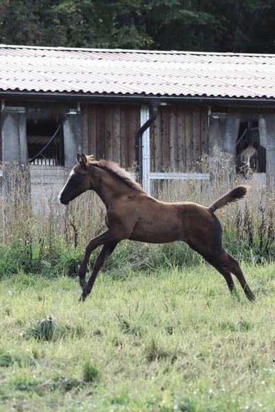 Zum Verkauf steht mein Selbstgezogenes Hengstfohlen, geboren im Juli 2025. Santino ist kerngesund, Lebensfroh und hat für sein Alter schon einiges erlebt. Führen, Hufe geben und auch als Handpferd im Gelände war er schon dabei und macht das alles super. Auch die Reithalle kennt er. Er steht momentan mit meiner anderen Stute mit Stutfohlen zusammen und ist somit Kontakt zu anderen Pferden in der Herde gewohnt. Durch die Größe der Eltern wird er sicher auch für Große Reiter Geeignet sein. Mutter: Kann besichtigt werden, Ungarisches Sportpferd, Springen Veranlagt, ca 1.64 groß, Apfelschimmel Vater: Whiz my Little Gun, Paint Horse, Fuchs Santino wäre sicher ein tolles pferd im Westernsport, aber auch unter dem Englisch Sattel kann ich ihn mir gut vorstellen, durch seine doppelte Veranlagung also für alles zu haben. Er ist neugierig, immer motiviert und lernt schnell. Er wird sicher ein super verlässlicher Partner. Ich gebe ihn nur in die besten Hände ab. Es fällt mir sehr schwer, aber ich kann leider nicht beide Fohlen meiner Stuten behalten. Bei Interesse oder Fragen schreib mir gerne eine Nachricht auf WhatsApp: 0160 94453071