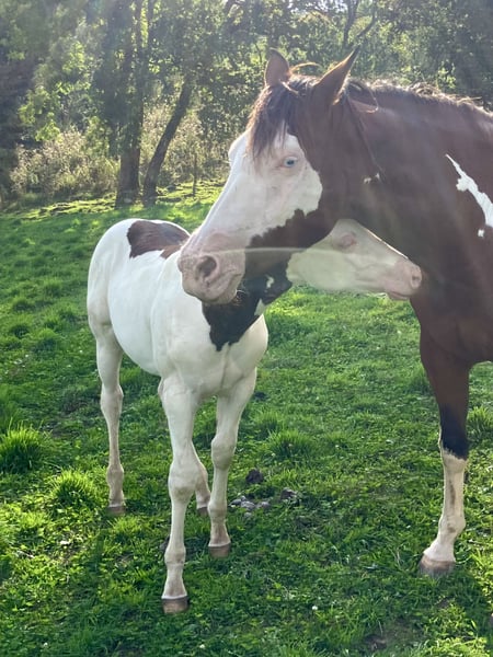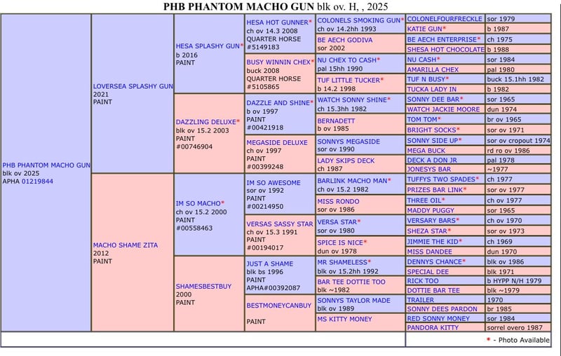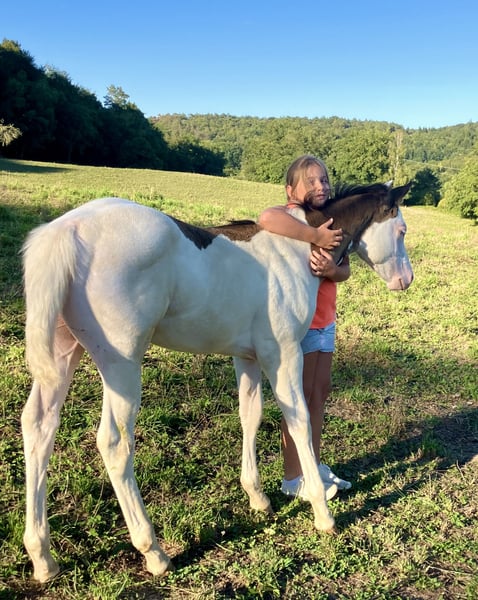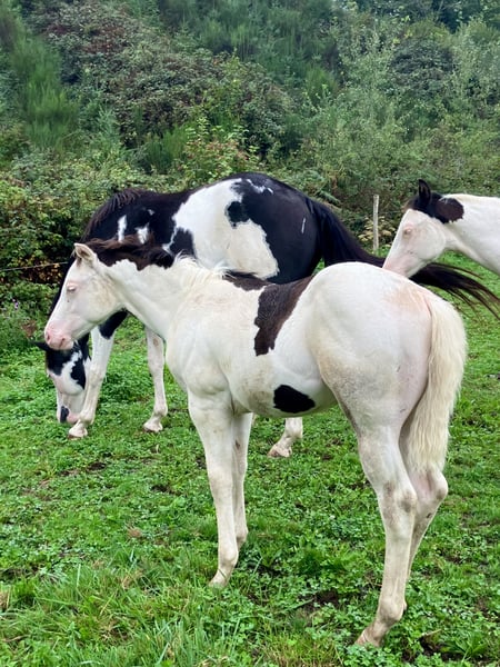 PHB PHANTOM MACHO GUN( Ee aa SW1/SW1 DW20/DW20 et 7 panels negatifs !!) PAINT HORSE noir splash pleins papiers US et FR né le 22 mai 2025. PHANTOM est négatif au frame overo,homozygote splash et homozygote dw20 , un candidat parfait pour faire un futur étalon, étant donné qu’il est l’un des 1 ers produits de notre Etalon importé du Canada( LOVERSEA SPLASHY GUN, lignée colonels smoking gun), avec une conformation massive et musculeuse par les 2 parents Zita comme Loversea. Sa mère est une grande et grosse Jument, avec un peu de halter dans son pedigree, elle a l’habitude de nous faire de magnifiques poulains très bien conformés. Son père est un Paint 75%quarter horse, arrière petit fils de Colonels smoking gun, nous l’avons du Canada, un très bon mental, grosse morphologie , mais avec de la puissance et de la rapidité. Nos chevaux sont élevés en troupeau, avec les étalons, et une partie d’entre eux est montée en loisirs, l’éducation des poulains se fait naturellement, ils suivent leur mères en randonnée, ont tous les codes sociaux de la vie en communauté entre chevaux, les poulains sont sevrés vers sept mois et éduqués à marcher en longe, à monter en transport, à donner les pieds, au maréchal , ils sont aussi régulièrement vermifugés et correctement vaccinés avant leur départ. localisation FRANCE, Corrèze. Disponible à la réservation, pourra partir à partir de décembre 2025.