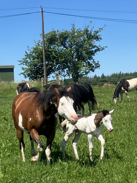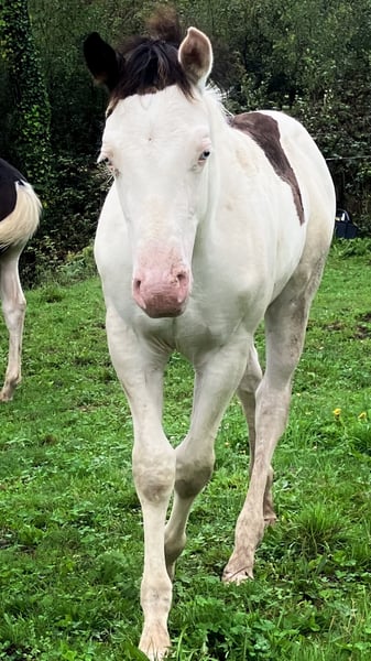 PHB PHANTOM MACHO GUN (Ee aa SW1/SW1 DW20/DW20 i 7 paneli negatywnych!!) KONIK PAINT czarny splash, pełne papiery US i FR, urodzony 22 maja 2025 roku. PHANTOM jest negatywny na frame overo, homozygotyczny splash i homozygotyczny dw20, idealny kandydat na przyszłego ogiera, biorąc pod uwagę, że jest jednym z pierwszych potomków naszego ogiera importowanego z Kanady (LOVERSEA SPLASHY GUN, linia Colonels Smoking Gun), z masywną i muskularną konformacją po obu rodzicach Zita i Loversea. Jego matka to duża i mocna klacz, z odrobiną haltera w swoim rodowodzie, która regularnie rodzi nam wspaniałe źrebaki o bardzo dobrej konformacji. Jego ojciec to Paint 75% quarter horse, prawnuk Colonels Smoking Gun, którego przywieźliśmy z Kanady, o bardzo dobrym temperamencie, dużej morfologii, ale z mocą i szybkością. Nasze konie są hodowane w stadzie, z ogierami, a część z nich jest użytkowana rekreacyjnie, edukacja źrebaków odbywa się naturalnie, podążają za swoimi matkami na wycieczkach, mają wszystkie społeczne normy życia w grupie koni, źrebaki są odsadzone około siódmego miesiąca życia i uczone chodzenia na lonży, wsiadania do transportu, podawania kopyt, u kowala, są również regularnie odrobaczane i odpowiednio szczepione przed wyjazdem. Lokalizacja: FRANCJA, Corrèze. Dostępny do rezerwacji, może wyjechać od grudnia 2025 roku.
