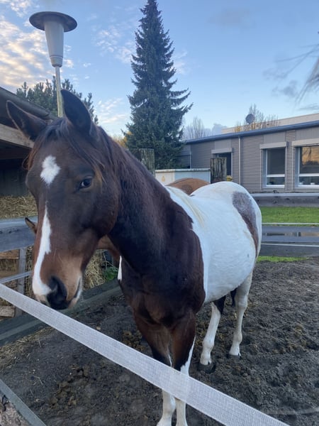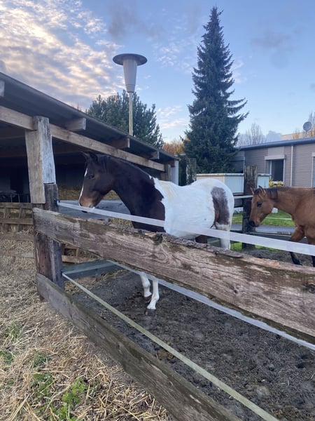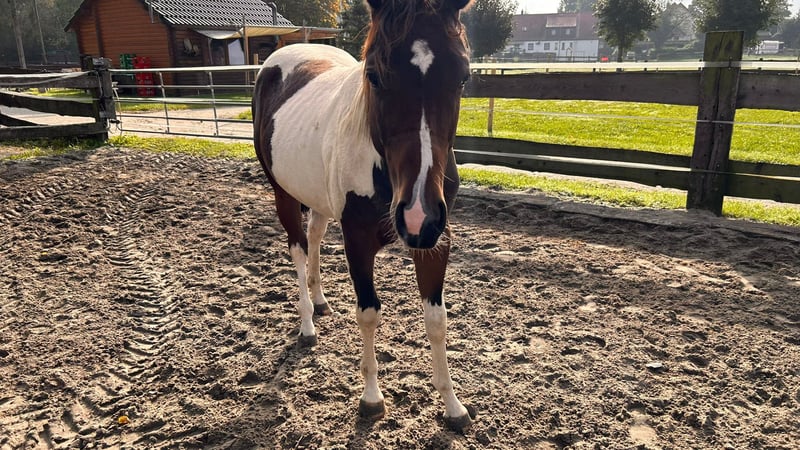 Te koop: een prachtige Paint Horse ruin, geboren in 2023. Met een verwachte schofthoogte van 152 cm en zijn opvallende Tobiano-vachtpatroon in alle kleuren is hij een echte blikvanger. Van hoofd tot staart is de lieve Rudi een echt hartendief. Deze getalenteerde ruin is uitstekend geschikt voor de discipline Reining en toont al veelbelovende kwaliteiten. Hij is vriendelijk in de omgang en heeft een rustig, evenwichtig karakter, wat hem een ideale partner maakt voor ruiters van alle ervaringsniveaus. Hij is ook goed te laden en hoefsmid-vriendelijk. Hij groeit op in een diervriendelijke omgeving met 24/7 weidegang in de zomer en in de winter de hele dag op de paddock en 's avonds op stal. Hij is uitstekend gesocialiseerd. De verkoop vindt plaats in goede handen die hem een liefdevol thuis kunnen bieden (graag ook ter plaatse op de stal). Door plotselinge beroepsveranderingen moet ik helaas van hem afzien. Ik zou het ook fijn vinden als een verzorging of ruiterbijdrage voor later misschien mogelijk zou zijn, afhankelijk van de locatie. Bij interesse of verdere vragen hoor ik graag van u!