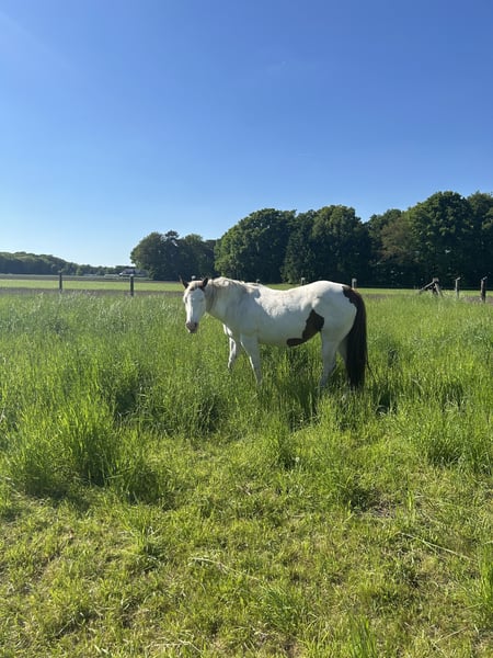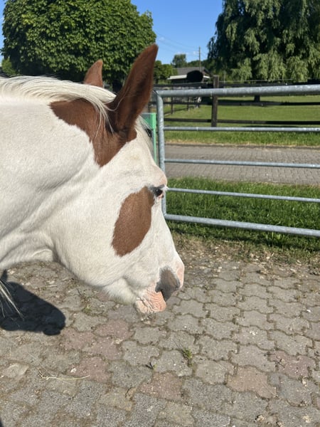 Unfortunately, I have to part with my 17-year-old Paint Horse mare, Peppys Little Jule, with a heavy heart, as we do not match in terms of riding and personality. However, at 17, Jule is far from rusty :) Jule is super curious and eager to learn, but she needs an experienced rider/horse person who can provide her with security and assertiveness. Therefore, she is only available to experienced riders/horse people. Jule is familiar with groundwork and arena work, which she enjoys, but unfortunately, this has been somewhat neglected due to me – so she would need to be brought back into training to build up her muscles properly and lose a bit of weight :) Traveling in a trailer is no problem for Jule; she does it easily and kindly (even after not being transported for a while). Jule is currently on pasture 24/7 and spends the evenings in a box during the winter :) At the moment, she is barefoot, which does not cause her any problems (but she is also familiar with shoes). She was freshly dewormed at the beginning of September. Jule has a very nice pedigree from America! :) (Papers are available and will be provided). It is important to me that Jule goes to a good home where she will receive the necessary attention she deserves! Therefore, placement is prioritized over price. Jule can be viewed at any time.