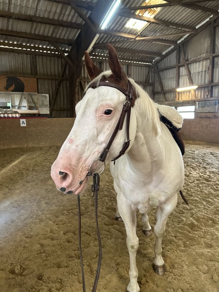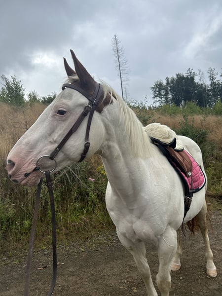 Lamentablemente, tengo que separarme con gran pesar de mi yegua Painthorse de 17 años, Peppys Little Jule, ya que no encajamos bien ni como jinetes ni como personas. Jule, con sus 17 años, todavía no está oxidada :) Jule es muy curiosa y dispuesta a aprender, pero necesita un jinete/persona con experiencia que le brinde seguridad y que pueda imponerse, por lo que solo se ofrece a jinetes/personas experimentadas. Jule conoce el trabajo en pista y en el picadero, que le gusta hacer, pero desafortunadamente esto ha quedado un poco de lado por mi parte en este momento; por lo tanto, sería necesario volver a ponerla en entrenamiento para que pueda desarrollar músculo correctamente y perder un poco de peso :) No tiene problemas para viajar en remolque, lo hace sin problemas y con cariño (incluso después de un tiempo sin hacerlo). Actualmente, Jule está en el prado 24/7 y en invierno pasa la noche en el box :) En este momento está descalza, lo que no le causa problemas (también conoce los herrados). A principios de septiembre, fue desparacitada. Jule también tiene un muy buen pedigree de América :) (los documentos están disponibles y se entregarán). Es importante para mí que Jule vaya a un buen hogar donde se le brinde la atención necesaria que merece. Por eso, la ubicación es más importante que el precio. Jule puede ser visitada.