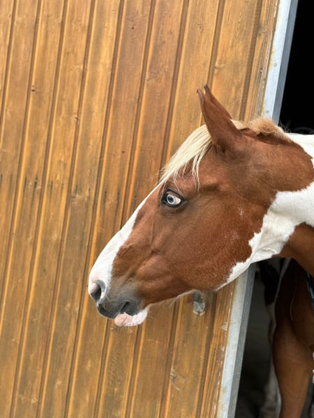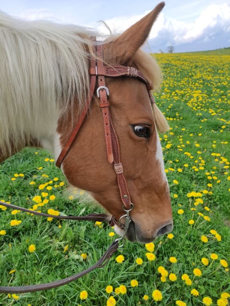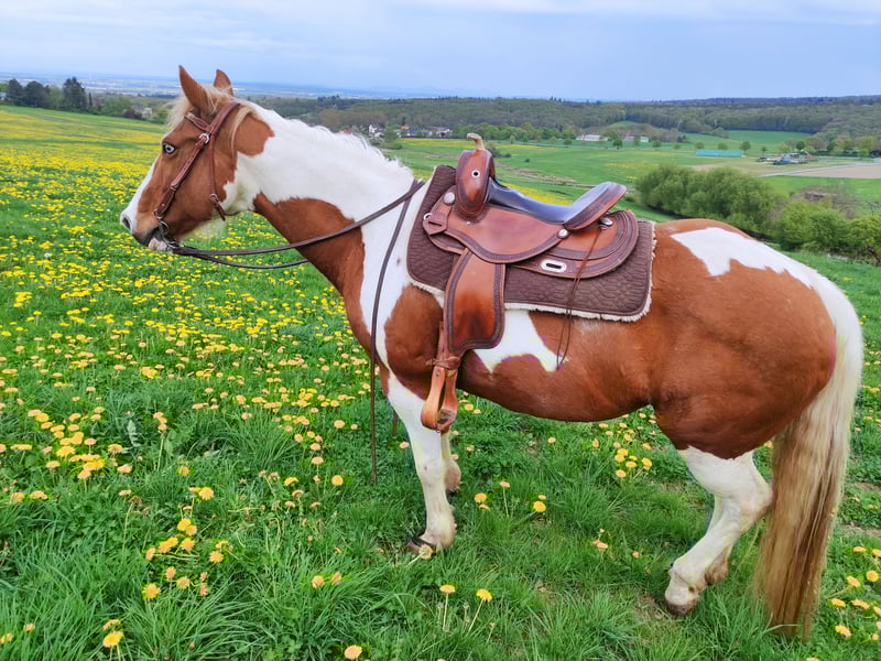 Verkaufe Paint Horse Stute – Chestnut Tobiano-Farben Zum Verkauf steht eine wunderschöne Paint Horse Stute mit Rufnamen Blue, geboren im Jahr 2008. Der Stammbaum spricht für sich! Diese liebe Stute ist ideal für alle Reiter. Sowohl Anfänger als auch Erfahrene haben Spaß mit ihr. Sie ist ein tolles Verlasspferd und absolut geländetauglich. Auch meine jungen Reitbeteiligungen kommen prima mit Ihr zurecht. Sie ist gut ausgebildet und arbeitswillig. Bodenarbeitsprofi! Sie ist neugierig, lernt sehr schnell und lässt sich super korrigieren. Ihre Gangarten sind bequem, besonders ihr Jog. Der Galopp ist leicht und super zu sitzen. Regelmäßige Behandlungen durch die Osteopathin helfen Sie geschmeidig zu halten. Leider hat Sie seit ein paar Jahren eine asthmatische Lungenerkrankung und muss regelmäßig inhalieren. Der Flexineb gehört zu ihr, ist einsatzbereit und sehr gut gepflegt. Ansonsten ist sie gesund und liebt den Offenstall und Ihre Weidepartner. Ich gebe Sie nur schweren Herzens aufgrund von Mehrfachbelastung ab. Das Pferd hat durch das Inhalieren veränderte Bedürfnisse, die ich zeitlich nicht mehr stemmen kann. Die Entscheidung wurde Jahre überdacht, aber leider arbeitet die Zeit nicht für uns beide, daher musste nun endgültig eine Entscheidung getroffen werden. Ich hoffe mit dieser Anzeige meldet sich eine Person, die ein absolutes Traumpferd zu schätzen weiß, aber auch bereit ist, die Zeit und Pflege zu investieren die Blue braucht. Bei Interesse oder weiteren Fragen stehe ich gerne zur Verfügung. Eine Besichtigung ist nach Vereinbarung möglich. Einer AKU steht nichts im Wege!