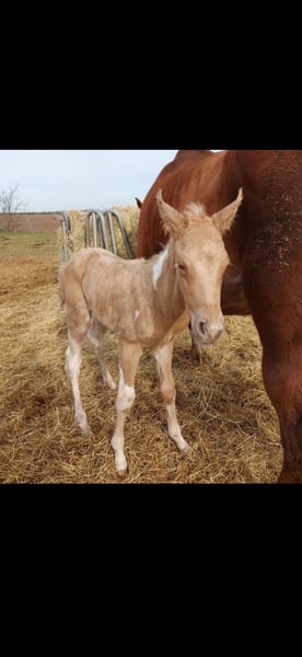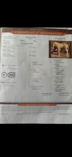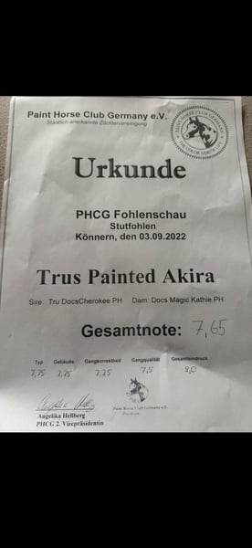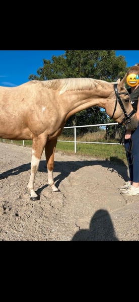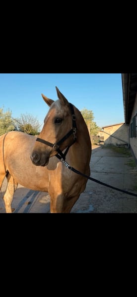 With a heavy heart, I have decided to place my beloved horse for sale. Trus Painted Akira, affectionately called Akira, was born on April 12, 2022, making her a 3.5-year-old purebred Paint Horse mare. She is a Palomino Tobiano with excellent bloodlines (see images 11-14). In images 8 and 9, you can see her as a foal and her mother; image 10 shows her sire. She will likely also be suitable for breeding in the future. She currently stands at approximately 1.50/1.55 meters, but I believe she still has some growth potential. At the moment, she is stabled in a box with daily turnout in a mixed herd, although she is also familiar with 24/7 turnout, which she didn’t seem fully satisfied with. She is incredibly sweet, and once she has gained trust, you can go through thick and thin with her. She may be a bit unsure around new people initially, but that quickly passes. It is very difficult for me to make this decision, as I have known her since she was born, but this decision is made for her, not for me. I have decided to give her into loving hands because I no longer feel I can do her justice. I lack the experience needed to properly train and promote her as she deserves and needs. Currently, she is being backed (with a professional rider) and is familiar with walk, trot, and the beginnings of canter under saddle. We have started gently, so she is not yet perfect, but she always tries her best, is well-behaved, and eager to learn. She is very sweet and fearless in handling. She knows tractors, dogs, children, cars, and remains unshaken. She is also familiar with riding in the field from the ground, always very gentle. We have been out on one trail ride so far, which she handled excellently. She also enjoys groundwork and can do a few tricks (circling, Spanish greeting, smiling, etc.). She is very cooperative and up for any fun. Lunging with or without side reins works perfectly. Due to her age, she is not suitable for beginners and requires an experienced, caring person who can take the time she needs. Trial riding is not possible at this stage of her training (videos of her current ridden work are available and can be sent upon request). She has been shod four times, as she cannot currently go barefoot. Her teeth have been recently floated, and she has been examined by a chiropractor. She is regularly dewormed and vaccinated. A suitable saddle (and accessories) can be purchased at an additional cost. (The saddle has been recently fitted.) I wish for her to find a loving new home where she can be supported and cherished! Price is secondary! (No dealers, please!) Feel free to contact me if you want to get to know Akira. We look forward to your visit. You can reach me at 015172412135 or message me here. Phone and WhatsApp available.