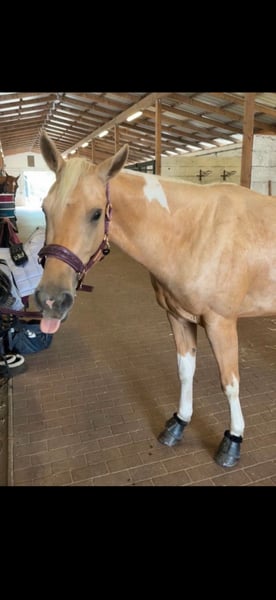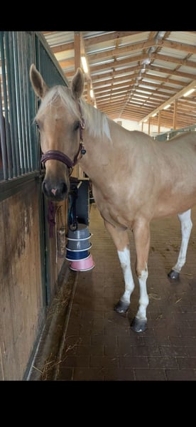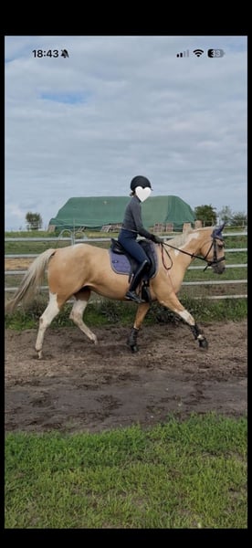 Met pijn in het hart heb ik besloten mijn geliefde paardje een nieuw thuis te geven. Trus Painted Akira, liefdevol Akira genoemd, is geboren op 12-04-2022 en is daarmee een 3,5-jarige, volledig geregistreerde Paint Horse merrie. Ze is een Palomino Tobiano met een uitstekende afstamming (zie afbeelding 11-14). Op afbeeldingen 8 en 9 zie je haar als veulentje en haar moeder, afbeelding 10 toont haar vader. Later zal ze ook interessant kunnen zijn voor de fokkerij. Ze is momenteel ongeveer 1,50/1,55 m hoog, maar ik denk dat er nog wat groei in zit. Ze staat nu in een box met dagelijkse weidegang in een gemengde kudde, maar ze kent ook 24/7 weidegang, hoewel ze daar niet helemaal tevreden mee was. Ze is super lief en als ze eenmaal vertrouwen heeft, kan je met haar door het vuur gaan. In het begin is ze bij nieuwe mensen wat onzeker, maar dat trekt snel weg. Het is erg moeilijk voor mij om deze beslissing te nemen, omdat ik haar sinds haar geboorte ken, maar deze keuze wordt gemaakt voor haar welzijn, niet voor mij. Ik heb besloten haar in liefdevolle handen te geven, omdat ik haar niet meer de aandacht en begeleiding kan geven die ze verdient en nodig heeft. Ik heb niet de juiste ervaring om haar op te leiden en te stimuleren zoals ze dat verdient. Ze wordt momenteel onder het zadel gereden (met een instructrice) en kent stap, draf en de basis van galop onder het zadel. We zijn voorzichtig begonnen, dus ze loopt nog niet perfect, maar ze doet altijd haar best, is braaf en leergierig. In omgang is ze heel lief en onbevreesd. Ze kent tractoren, honden, kinderen, auto’s en is daarbij ook niet bang. Ze is ook gewend om buitenritten te maken vanaf de grond en blijft daarbij altijd rustig. We hebben al eens samen een buitenrit gemaakt, wat ze heel goed heeft gedaan. Ze vindt grondwerk heel leuk en kan zelfs een paar trucjes (zoals cirkelen, Spaanse pas, glimlachje en dergelijke). Ze doet echt alles met plezier en staat open voor plezier en nieuwe dingen. Longeren met en zonder bit is ook geen probleem. Vanwege haar leeftijd is ze geen beginnerspaard en heeft ze een ervaren, liefdevolle persoon nodig die de tijd voor haar kan nemen. Proefritten zijn vanwege haar opleidingsniveau niet mogelijk (wel heb ik video's van haar onder het zadel, die ik op verzoek kan sturen). Ze is vier keer beslagen, omdat ze momenteel niet zonder hoefbeslag kan lopen. Haar tanden zijn recent gecontroleerd en verzorgd, en ze is ook bij de chiropractor geweest. Ze wordt regelmatig ontwormd en is gevaccineerd. Een passende zadel en accessoires kunnen tegen meerprijs worden overgenomen. (De zadel is recent aangepast.) Ik wens haar een mooi nieuw thuis toe waar ze gestimuleerd en geliefd wordt! Plaats gaat voor prijs! (Geen handelaren!) Wil je Akira leren kennen? We kijken uit naar je bezoek! Je kunt contact met mij opnemen via 015172412135 of hier, telefonisch of via WhatsApp.