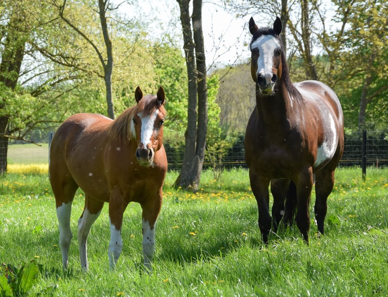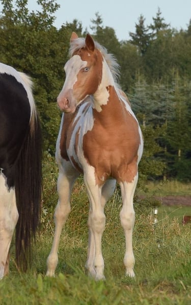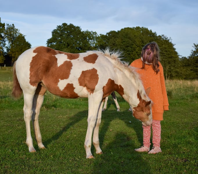 Hallo, zeer vriendelijk Paint Horse merrie veulen "Docs Gold Rose - aka Rose" met een correcte bouw, solide fundament en een prachtige, open karakter. Ze zal later een geweldige partner zijn voor recreatie en sport. Ze is nu al zeer mensgericht en vriendelijk. Gegevens over Rose: Ras: American Paint Horse Geslacht: Merrie Geboortedatum: 05-06-2025 Kleur: Gold Champagne Tobiano 7 Panel N/N Geschatte eindhoogte: ca. 150-152 cm Afstamming: Vader: Indian Bigstep, succesvol getoond in Reining, stokmaat 1,54 m Moeder: Charmed Witch Josie, stokmaat 1,47 m Rose is APHA geregistreerd en het CoR is al aanwezig. Het equidenpaspoort is aangevraagd. De foto's zijn van eind september en van de eerste 3 dagen. De laatste twee foto's tonen haar volle zus (verkocht) op de leeftijd van één jaar. Zeer cool en nieuwsgierig, momenteel met een stokmaat van 1,41 m. Kan ook ter plaatse worden bekeken. Ze is gezond en groeit op een diervriendelijke manier op. Is regelmatig ontwormd en bij de hoefsmid geweest en wordt gevaccineerd. Bij vertrek kent ze leeftijdsgebonden het veulen ABC. Vervoer kan georganiseerd of overgenomen worden. Ze kan ook voor verdere opfok blijven. Bij serieuze interesse en vragen graag contact opnemen via 01732090733. ☺️ Met vriendelijke groet ☺️