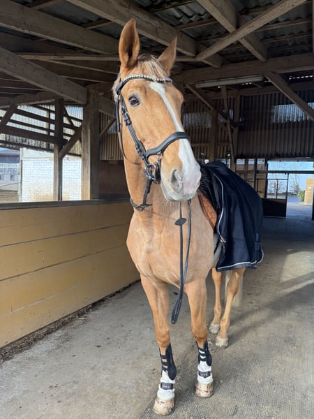 Zum Verkauf steht eine wunderschöne 11-jährige Palomino Stute mit einem Stockmaß von ca. 1,70 m. Die Stute ist im Springen bis Klasse M ausgebildet und läuft Dressur sicher auf A-Niveau. Sie zeigt sich stets fein im Maul, angenehm zu reiten und arbeitet motiviert mit. Im Umgang ist sie sehr brav, menschenbezogen und unkompliziert, sowohl beim Putzen, Satteln als auch beim Verladen. Dadurch eignet sie sich nicht nur für den ambitionierten Reiter, sondern auch für jemanden, der ein zuverlässiges Freizeit- und Sportpferd sucht. Sie ist gesund, schmiede- und verladefromm und kennt sowohl Halle als auch Gelände. Ein Probereiten ist jederzeit nach Absprache möglich. Bei ernsthaftem Interesse freuen wir uns über eine Nachricht mit kurzer Vorstellung.