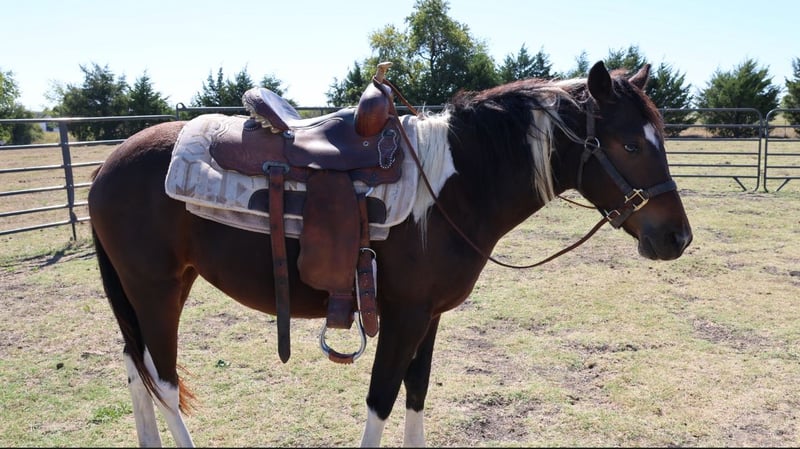 Super sweet and gentle 2-year-old Paint mare, about 13 hands tall. She’s halter broke, started under saddle, and perfect for the farrier. Has four white socks and a calm, friendly personality — no bite, no buck, and she gets along great with all horses and people. She’s been trained with love — no spurs, whips, or bits — and already knows voice commands for walk, trot, and gallop. Very smart, eager to please, and would make the perfect recreational riding or play-day horse with a little more time to mature. This mare has a ton of potential and a kind heart. Located in Leonard, Message for more info or to come meet her! Can be transported anywhere.
