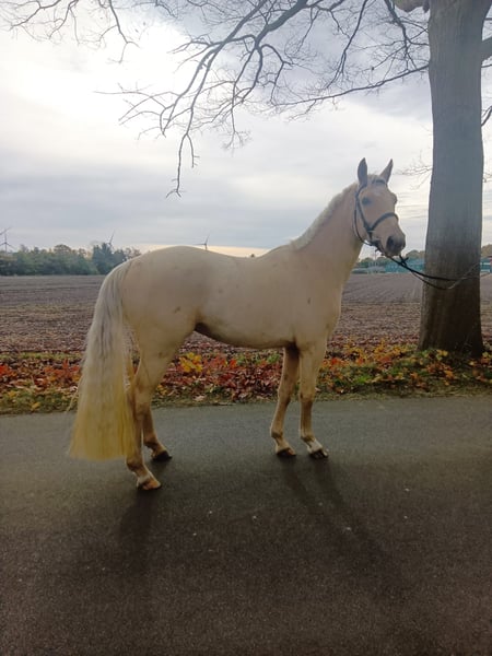Verkaufe junge Palomino-Stute Wir bieten eine wunderschöne Palomino-Stute, geboren im Jahr 2022, zum Verkauf an. Mit einem Stockmaß von ca. 160 cm vereint sie Eleganz und Kraft. Sie ist vielseitig einsetzbar. Die Stute ist gesund, gut erzogen und hat ein freundliches Wesen. Perfekt für ambitionierte Reiter, die ein junges Pferd mit viel Potenzial suchen. Primabella ist noch nicht geritten aber bereits anlongiert mit Sattel und Trense. Vater:Krem-Robin Hood aus dem Niederlande. Mutter:Gordon SchW. Bei Interesse oder für weitere Informationen freuen wir uns auf Ihre Kontaktaufnahme!