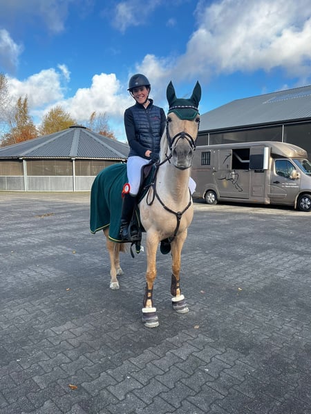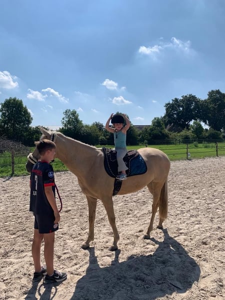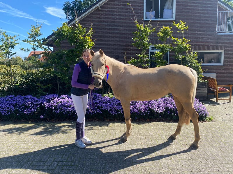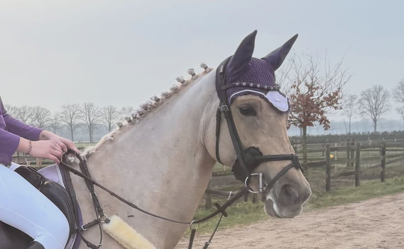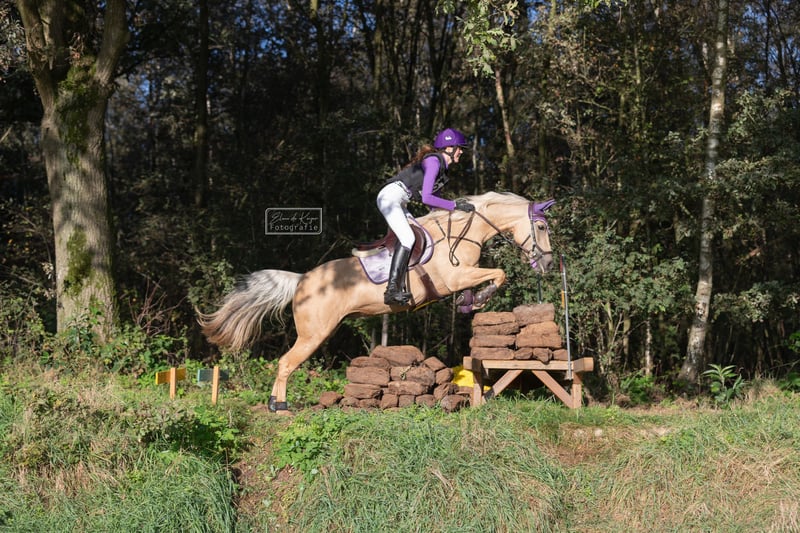 Miss Goldberg is te koop. Ze is als drie jarige pony hier gekomen en mijn dochter heeft haar getraind. Mijn dochter gaat een internationale studie volgen en daarom bieden we onze lieve Miss Goldberg te koop aan. . Door Miss Goldberg is mijn dochter springen en eventing heel leuk gaan vinden. Miss Goldberg weigert nooit, ze denkt mee en helpt haar ruiter in het parcours en in de cross. Op de poetsplaats is ze super braaf. Ze staat uren lang keurig stil, zodat een klein kind haar kan borstelen en verzorgen. Ze blijft netjes staan tijdens het wassen, scheren en bij de hoefsmid. Miss Goldberg staat in het seizoen van de eventingwedstrijden op vier ijzers. Nu heeft ze alleen voor ijzers. Miss Goldberg loopt zelf de trailer op en is rustig op wedstrijd. Miss Goldberg heeft veel pony wedstrijden gelopen. Nu wordt ze al meerdere jaren tussen de paarden uitgebracht. Miss Goldberg heeft een fijne grote galop. Moeiteloos past ze zich aan in de driesprong en dubbelsprong. Miss Goldberg is een D-pony met een stok maat van 1,488 m. Miss Goldberg is L-dressuur en kent de zijgangen van de hogere klassen. Miss Goldberg springt 100 110 cm bij de paarden. Miss Goldberg rijdt B klasse eventing bij de paarden en dit is de L-M hoogte bij de pony's. Het is een zeer betrouwbare pony. Ze is erg makkelijk in de omgang en altijd erg lief. Tijdens het rijden is ze lekker voorwaarts en gehoorzaam. Ze is ijverig in de springarena en laat haar ruiter nooit in de steek. Ze blijft naar voren gaan bij alle eventing hindernissen. Ze is snel, lenig, heeft veel power en kan kort draaien. Kortom alles wat een sportpony nodig heeft om te winnen in de wedstrijdring. Miss Goldberg is een intelligente pony die direct hard aan het werk gaat als ze wordt gereden. In de kudde is ze vriendelijk en een leider. Ze trekt haar eigen plan en de andere pony's zijn graag bij haar in de buurt. Miss Goldberg heeft een gouden karakter en winnaarsmentaliteit.. Miss Goldberg is kerngezond. Ze wordt 4-6 keer per week gereden en ze blijft fanatiek meewerken. Op wedstrijden doet ze extra haar best. Als drie jarige pony is Miss Goldberg klinisch gekeurd. Alle keuringen zijn toegestaan, mits kosten koper. We zoeken voor Miss Goldberg een gedreven ruiter. Een stal met veel bewegingsmogelijkheden voor de pony vinden we ook belangrijk. We hebben heel veel filmpjes van Miss Goldberg. Heeft u meer zien? Dan sturen we u alle filmpjes door. Er is een YouTube kanaal van Miss Goldberg zie Google browser www.youtube.com/@annettehorses3700 U kunt Miss Goldberg ook bekijken op Instagram via account simmerstal2 . U kunt Miss Goldberg komen bewonderen en rijden als u echte interesse heeft. Bel 0031 6 30960037 voor een afspraak.