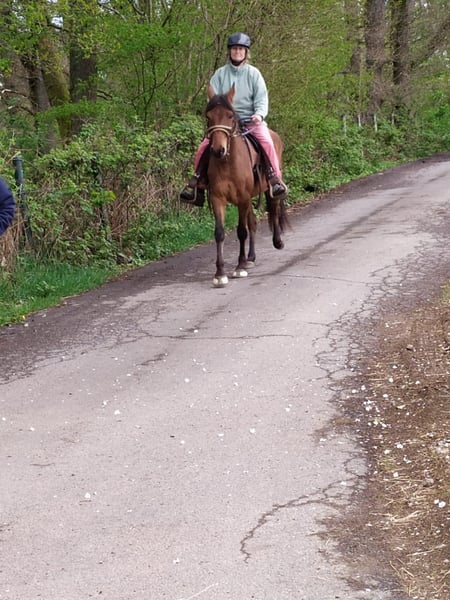 Na een ongeval dat mij volledig aan de grond heeft genageld, moet ik afscheid nemen van Caramelo, een puur ras Paso Fino, die ik onlangs heb gekocht. Deze 8-jarige hengst is geschikt voor buitenritten, maar is nog weinig ervaren. Hij moet regelmatig gewerkt worden om aan de wensen van zijn toekomstige ruiter (m/v) te voldoen. Ik heb hem gedurende korte periode (minder dan 4 maanden) buiten gereden, zowel alleen als in groep. Ondanks zijn leeftijd is hij langzaam vertrouwd geraakt met wandelpaden, modder, kleine beekjes en steile hellingen. Hij heeft nog wat dressuurwerk nodig en moet zijn spiermassa verder ontwikkelen door regelmatige, langere buitenritten. Voor mijn opname in het ziekenhuis deden we (minstens twee keer per week) ritten van 1 tot 2 uur. Hij is momenteel niet beslagen, maar is zonder problemen op de hoeven getrokken. Hij zou perfect passen bij een ervaren ruiter (m/v) die hem geleidelijk weer aan het werk kan brengen, aangezien hij sinds meer dan drie maanden niet meer gereden is. Hij is zeer sociaal, makkelijk in de omgang, niet dominant en woont buiten. Op dit moment deelt hij een grote weide met drie andere paarden, waarmee hij zich meteen goed heeft aangepast.