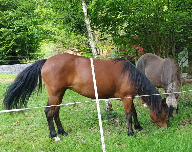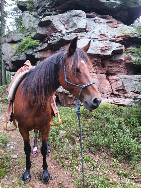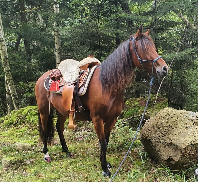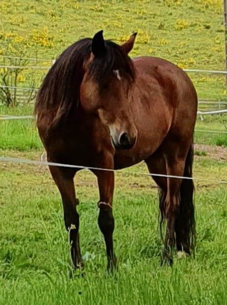 With a heavy heart, I am offering the beautiful, unique RO Atacama, a Paso Caballo, 14 years old, standing approximately 1.43 m, for sale. In February, I underwent a full knee replacement, and another knee surgery is scheduled for November. Currently, I am unable to perform the work around the horses—stall cleaning, turnout, etc.—and this will remain the case for the foreseeable future. Since then, I have experienced a domino effect of overuse inflammations in previously "quiet" arthroses and spinal issues. I have had a sports ban since 1985 and, since 1989, a riding ban from my doctors. Despite this, I have ridden mostly pain-free over the years because there is nothing softer and more beautiful than being out on Paso horses. Atacama is ridden by me (height 1.72 m, approx. 70 kg) bitless, using a knot halter with a Western saddle in the terrain, barefoot or with hoof boots (or Colombian bosal). She has a lively, expansive, very soft walk and tölt, which I exclusively ride due to my health issues. On the ground, we work a lot with poles, cavalettis, and dualgates in walk and trot, as well as free jumping over barrels and many ground obstacles to improve balance and calmness. We also do liberty work, where Atacama responds to the finest breathing and body signals. She is very sensitive, refined, and demands full attention, as she is a diva. She prefers to give her attention only to a person who offers fair leadership with empathy. She dislikes rough, heavy hands, whether on the ground or under saddle. Overly long or intense collection and heavy rein contact tend to make her tense. She is very light, sensitive to weight and breathing, and requires only minimal leg aids. She knows all lateral movements in walk and tölt. However, she prefers relaxed, unrushed interactions in the terrain or liberty work with obstacles. We have shared long rides through challenging terrain in the Vosges. She is proud, sensitive, and willing to perform when she trusts her handler. Anyone familiar with Paso horses knows what I am talking about. Therefore, she is not a "beginners' horse," nor suitable for children or inexperienced riders or those who change riders frequently. She is easy to load, stands absolutely still during transport, and remains calm during hoof care, veterinary examinations, dental treatments, and deworming. Atacama lives in a herd 365 days a year in an open stable with paddock trail. I see her as being in the upper middle of the herd hierarchy, but she tends to avoid conflicts. I am very conflicted about this decision... I will only part with her if she finds her soulmate or can be kept as a broodmare in an open stable. Due to her pedigree, she is quite interesting because her gene pool (56.5% Paso Peruano, 18.5% Icelandic, 12.5% Welsh Pony, 12.5% unknown pony) offers very healthy and robust qualities. Serious inquiries are welcome to request additional photos or videos via WhatsApp. Please do not respond with "what is the price." The VB price of 111 must be as per the listing. A well-ridden, healthy natural tölt horse has a fair value, but space is extremely important to me. Therefore, the price is negotiable, especially since she was bred again in early August with PDPC Picasso (Paso Peruano imported in 2023), from whom she had a beautiful filly in 2024. Since then, we have been in the Vosges and have not yet conducted a pregnancy check. She is a wonderful broodmare (she has had two foals) and has been completely uncomplicated during pregnancy and with her foals. I mainly rode her in the terrain during her pregnancy, up to about 8 weeks before and 6 weeks after a simple birth, until my operation in February 2025. If you are interested, I look forward to hearing from you. It would be ideal if you have experience with gaited horses, especially Pasos, or other South American breeds.