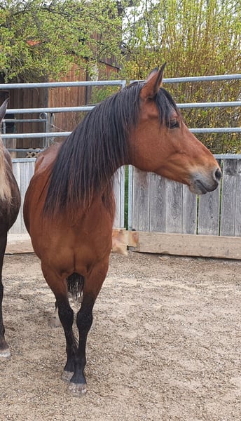 Schweren Herzens steht die wunderschöne einzigartige RO Atacama , Paso Caballo 14 Jahre alt, Stm 1.43m zum Verkauf. Ich hatte im Februar eine Knievollprothesen OP und im November folgt die nächste Knie OP. Ich kann die Arbeit um die Pferde, im Stall, Koppel etc. gerade und in absehbarer Zeit nicht mehr leisten. Seither erlebe ich ein Art Domino Effekt mit Überlastungsentzündungen von bisher "ruhigen" Arthrosen und Wirbelsäulenthemen. Denn seit 1985 habe ich deswegen Sportverbot und seit 1989 eigentlich auch Reitverbot seitens der Ärzte. Trotzdem bin ich in all den Jahren weitgehend schmerzfrei geritten, denn es gibt nichts Weicheres und Schöneres als auf Paso Pferden unterwegs zu sein. Atacama wird von mir ( 1.72m groß ca. 70 kg) gebisslos am Knotenhalfter mit Westernsattel im Gelände barfuß o. Hufschuhen geritten ( o. kolumbianischem Bosal ). Sie hat einen zügigen raumgreifenden, sehr weichen Schritt und Tölt, welche ich ausschließlich, aufgrund meiner gesundheitlichen Probleme, reite. Am Boden arbeite wir viel über Stangen, Cavalettis u. Dualgassen im Schritt und Trab, sowie Freispringen über Tonnen, neben viel Bodenhindernissen für Balance und Gelassenheit. Auch Freiarbeit, wo Atacama auf feinste Atmen- und Körpersignale reagiert. Sie ist super fein, sensibel und fordert volle Aufmerksamkeit für sich, denn sie ist eine Diva. Sie möchte ihre Aufmerksamkeit nur einem Menschen schenken, der faire Führung mit Einfühlungsvermögen anbietet. Sie mag grobmotorische harte Hände weder am Boden, noch unterm Sattel. ..zu viel, und zu lang in Versammlung und mit viel Zügelkontakt bringt sie eher in Spannung. Sie ist super fein mit Gewicht und Atmung und minimalen Schenkelhilfen zu reiten. Sie kennt alle Seitengänge in Schritt und Tölt. Am liebsten mag sie aber zügelloses Miteinander entspannt im Gelände sein oder Freiarbeit mit Hindernissen. Wir haben kilometerlange Ritte in schwierigem Gelände in den Vogesen miteinander verbracht. Sie ist stolz, sensibel und leistungsbereit, wenn man sich ihr Vertrauen verdient. Wer Pasopferde kennt, weiß wovon ich rede. Deshalb ist sie kein "Jedermannspferd", weder für Kinder, Anfänger oder dauernd wechselnde Reiter geeignet. Sie lässt sich einfach verladen, steht absolut ruhig, während der Fahrt, sowie bei der Hufpflege, jeglicher tierärztlichen Untersuchungen oder Zahnbehandlungen und Entwurmung hin. Atacama lebt in der Herde 365 Tage im Offenstall mit Paddocktrail. Rangmäßig sehe ich sie im oberen Mittelfeld, geht aber Konflikten eher aus dem Weg. Ich hadere sehr mit mir,... ich gebe sie nur ab, wenn sie ihren Seelenmenschen findet oder als Zuchtstute in einem Offenstall ziehen kann. Aufgrund ihrer Abstammung ist sie dafür interessant, weil Ihr Genpool ( 56,5% Paso Peruano, 18.5% Isländer, 12.5% Welshpony, 12.5% unbekanntes Pony ) sehr gesunde und robuste Voraussetzungen bietet. Wer ernsthaftes Interesse hat, kann gerne weitere Fotos/Videos per WhatsApp bekommen. Auf Anfragen die mit "was ist der Preis" werde ich nicht reagieren. Der VB Preis mit 111 muss lt. Kleinanzeigen sein. Ein gut gerittener gesunder Naturtölter hat einen reellen Preis, dennoch ist mir der Platz extrem wichtig. Deshalb ist der Preis Verhandlungssache, auch weil sie Anfang August nochmals bei PDPC Picasso ( Paso Peruano, der 2023 importiert wurde ) zum decken war, von dem sie 2024 ein wunderschönes Stutfohlen bekommen hat. Seither sind wir in den Vogesen und haben noch keine Trächtigkeitsuntersuchung gemacht. Sie ist eine tolle Mutterstute ( hatte 2 Fohlen) und völlig unkompliziert während der Trächtigkeit und mit Fohlen im Umgang gewesen. Ich habe sie während der Trächtigkeit bis ca. 8 Wochen vor und auch ca. 6 Wochen nach einer einfachen Geburt hauptsächlich im Gelände geritten, bis zu meiner OP im Februar25. Wenn dein Interesse geweckt ist, dann freue ich mich von dir zu lesen.. schön wäre, wenn Du Erfahrung mit Gangpferden, insbesondere Pasos hast oder anderen Südpferde Rassen.