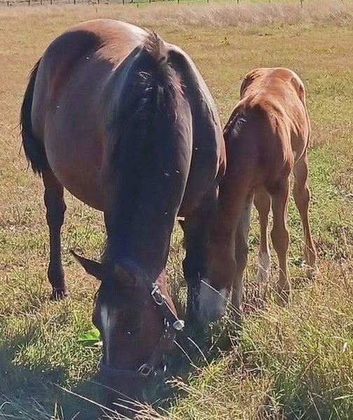 AMERICAN PAINT HORSE 🇺🇸🇺🇸🇺🇸 6-year-old mare Approx. 150 cm Sire: Mister Flare Olena – Paint – Overo Dam: Granit Des Gondard QH Mother: Overo See pedigree ✅ Panel 6 N/N tested – see report. The foal was weaned a few months ago. We are taking a relaxed approach to riding. A very calm and gentle mare. Sweet in handling. Reason: Owner kept only the foal. If you want to work with a horse, grow and learn together, this one is ideal.